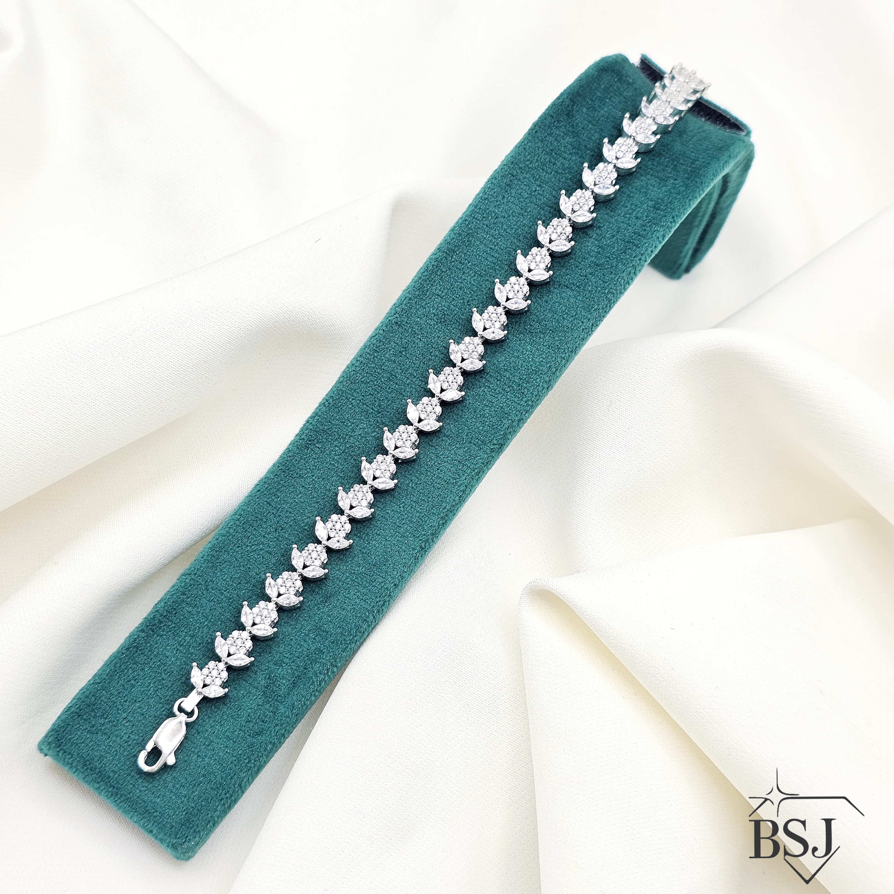 دستبند نقره BSJ_D608 یکی از دستبندهای مجلسی و ظریف ساخته شده از نقره با عیار 925 می باشد.سنگ های به کار رفته در آن برلیان از جنس اتمی زیرکونیا می باشند که به صورت میکروستینگ مخراج کاری شده اند و در برابر ضربه مقاوم اند.آبکاری دو مرحله ای رودیوم (طلا سفید)، سبب کیفیت بی نظیر دوام رنگ آن شده است و به دلیل عدم استفاده از نیکل در ساختار آن، بدون حساسیت بوده و با پوست حساس سازگار است.وزن دستبند 14.75 +- گرم می باشد.