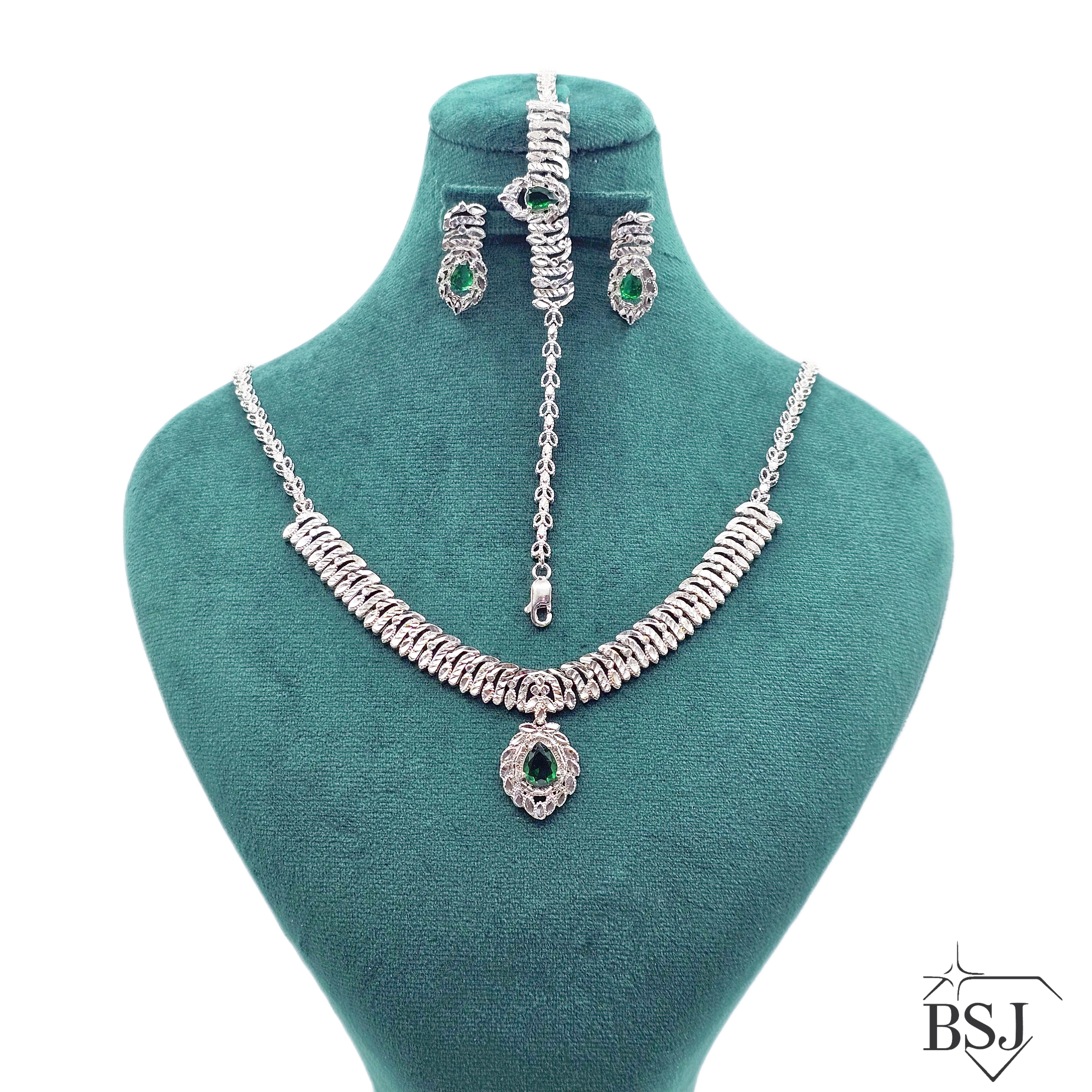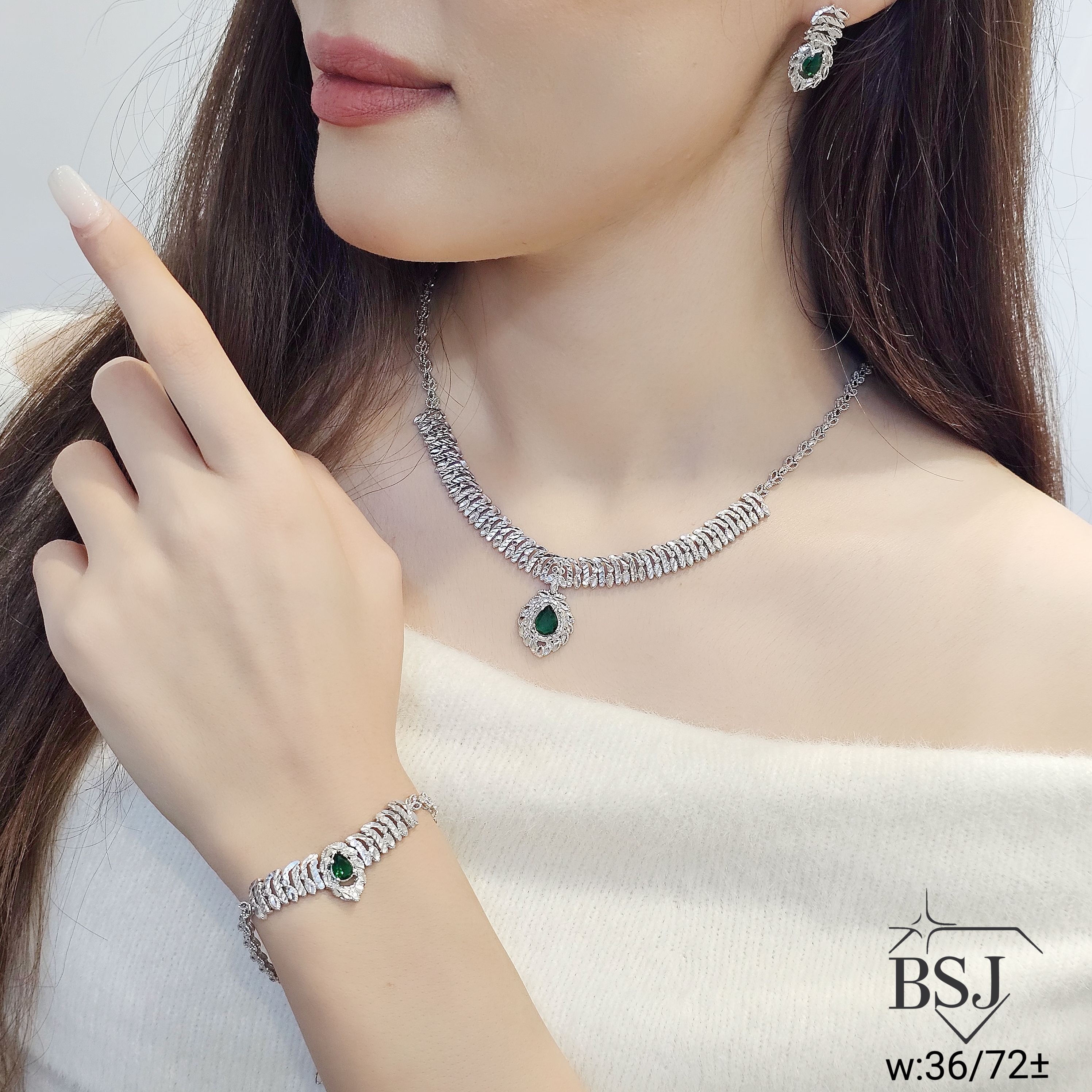 سرویس نقره تراش زنانه BSJ_S647 از سرویس های چشم نواز ساخته شده از نقره با عیار 925 می باشد.این سرویس زیبا، دارای نگین رنگی سنتتیک و تراش های بسیار درخشان بوده است.آبکاری دو مرحله ای رودیوم (طلاسفید)، سبب کیفیت بی نظیر دوام رنگ آن شده است و به دلیل عدم استفاده از نیکل در ساختار آن، بدون حساسیت بوده و با پوست حساس سازگار است.به دلیل کیفیت فوق العاده آبکاری آن، تفاوتی با نمونه طلا ندارد.وزن سرویس +-36.72 گرم می باشد.