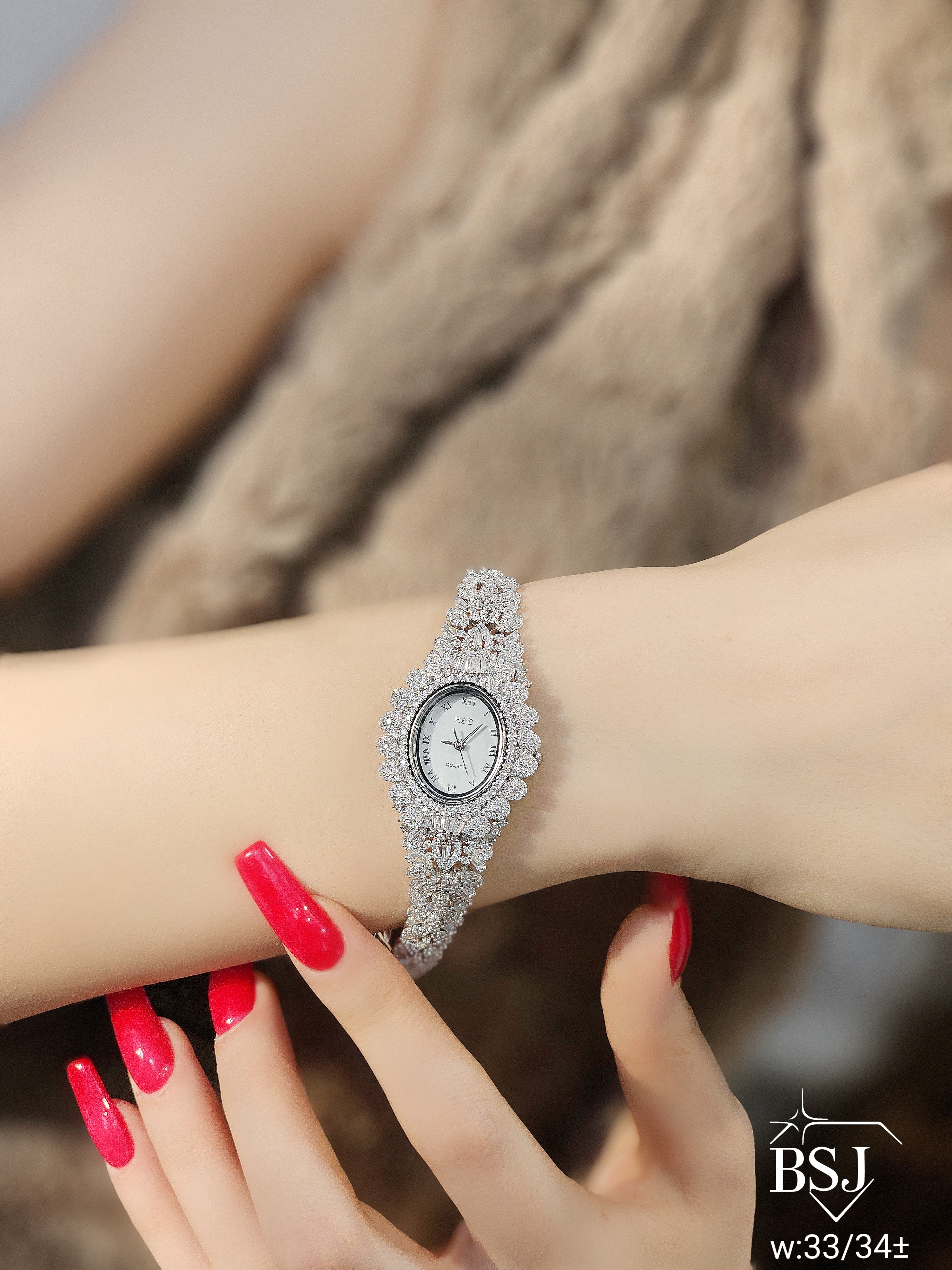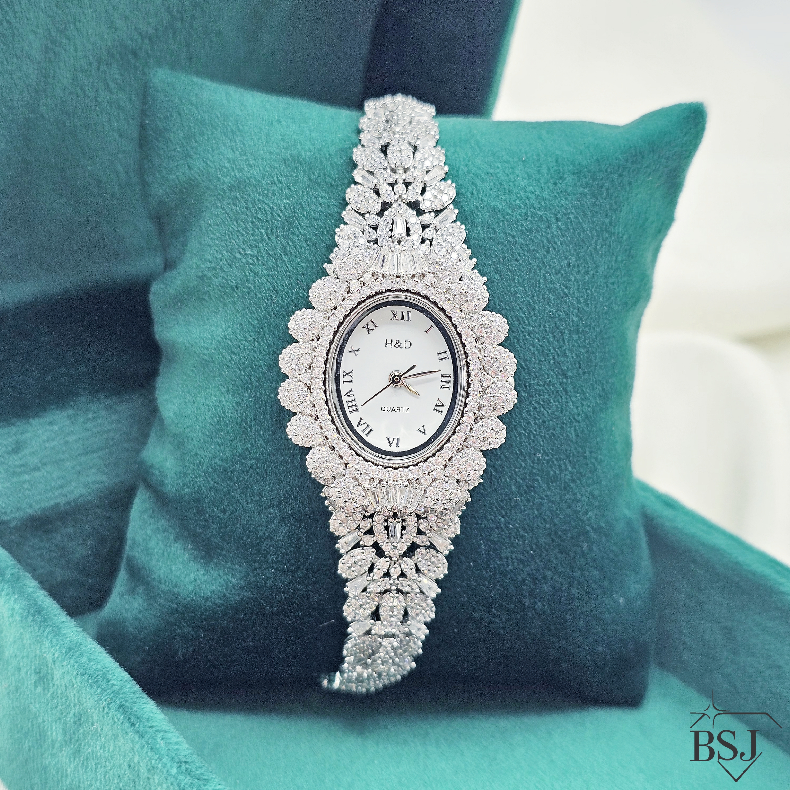 ساعت نقره جواهری زنانه BSJ_W539 از ساعت های شیک و جذاب ساخته شده از نقره با عیار 925 می باشد.سنگ های به کار رفته در آن امرالد و برلیان از جنس اتمی زیرکونیا می باشند که به صورت میکروستینگ مخراج کاری شده اند و در برابر ضربه مقاوم اند.جنس بدنه از نقره به عیار 925 بوده و تنها قسمتی از محصول که نقره نیست موتور آن می باشد.آبکاری دو مرحله ای رودیوم(طلا سفید)، سبب کیفیت بی نظیر دوام رنگ آن شده است و به دلیل عدم استفاده از نیکل در ساختار آن،بدون حساسیت بوده و با پوست حساس سازگار است.وزن تقریبی ساعت +- 33.34 گرم می باشد.