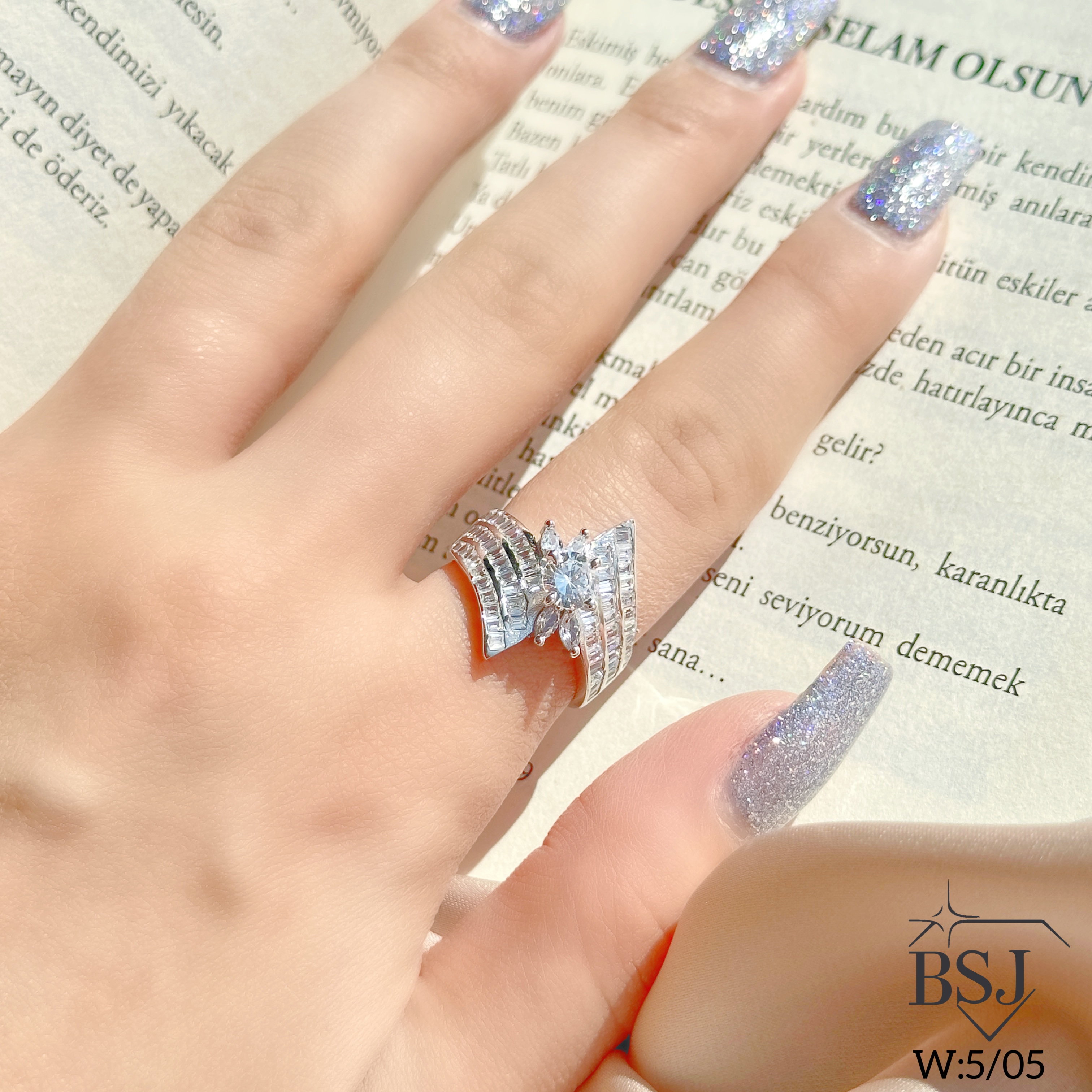 انگشتر نقره جواهری زنانه BSJ_R618 از انگشترهای خاص ساخته شده از نقره با عیار 925 می باشد.سنگ های برلیان از جنس اتمی زیرکونیا در ساختار آن به کار رفته است که به صورت میکروستینگ مخراج کاری شده و در برابر ضربه مقاوم است.آبکاری دو مرحله ای رودیوم(طلا سفید)، سبب کیفیت بی نظیر دوام رنگ آن شده است و به دلیل عدم استفاده از نیکل در ساختار آن، بدون حساسیت بوده و با پوست حساس سازگار است.به دلیل کیفیت فوق العاده و درخشش عالی، تفاوتی با نمونه طلا ندارد.وزن انگشتر5.05 گرم می باشد.