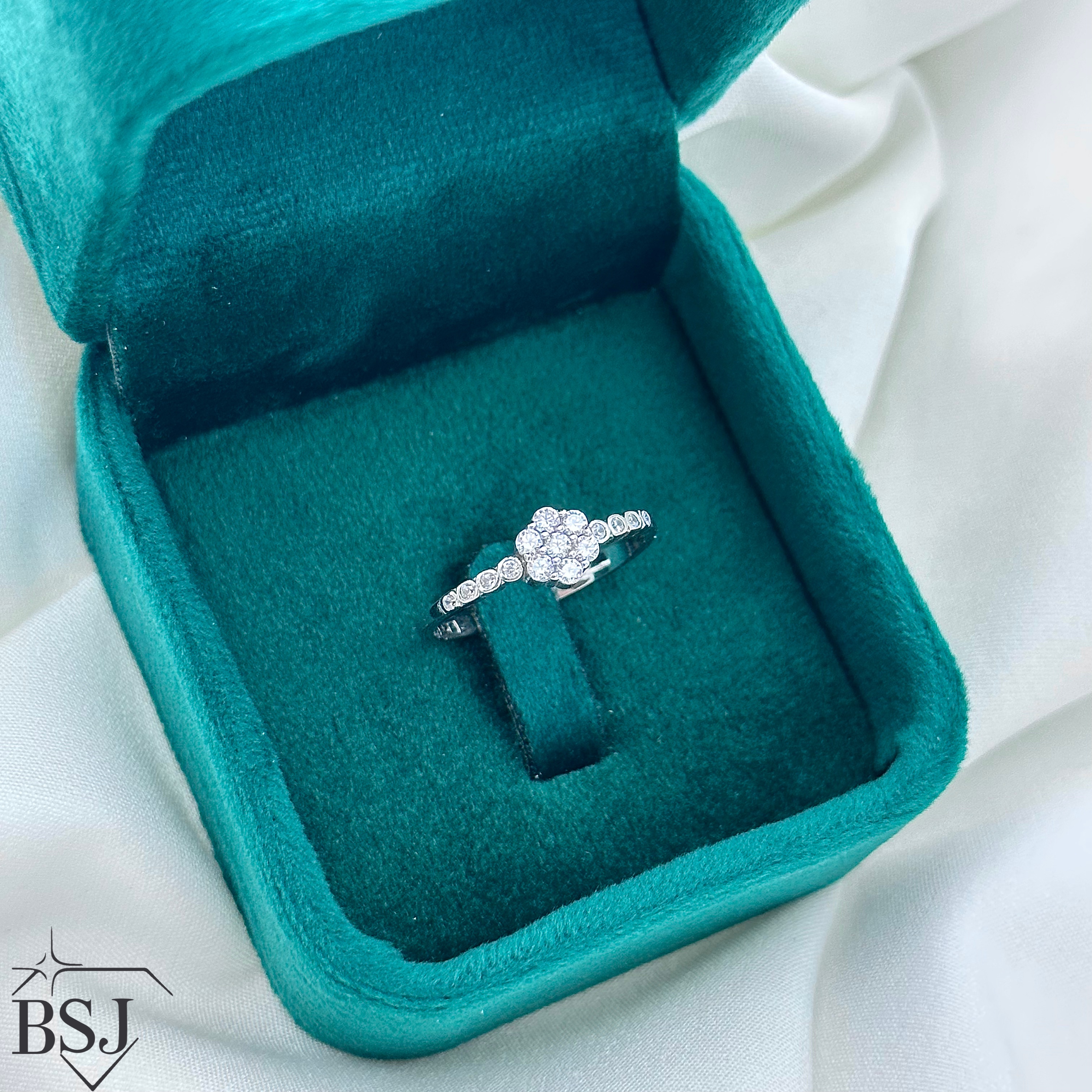 انگشتر نقره زنانه BSJ_R628 از انگشترهای خاص ساخته شده از نقره با عیار 925 می باشد.سنگ های برلیان از جنس اتمی زیرکونیا در ساختار آن به کار رفته است که به صورت میکروستینگ مخراج کاری شده و در برابر ضربه مقاوم است.آبکاری دو مرحله ای رودیوم(طلا سفید)، سبب کیفیت بی نظیر دوام رنگ آن شده است و به دلیل عدم استفاده از نیکل در ساختار آن، بدون حساسیت بوده و با پوست حساس سازگار است.به دلیل کیفیت فوق العاده و درخشش عالی، تفاوتی با نمونه طلا ندارد.وزن انگشتر 1.70 گرم می باشد.