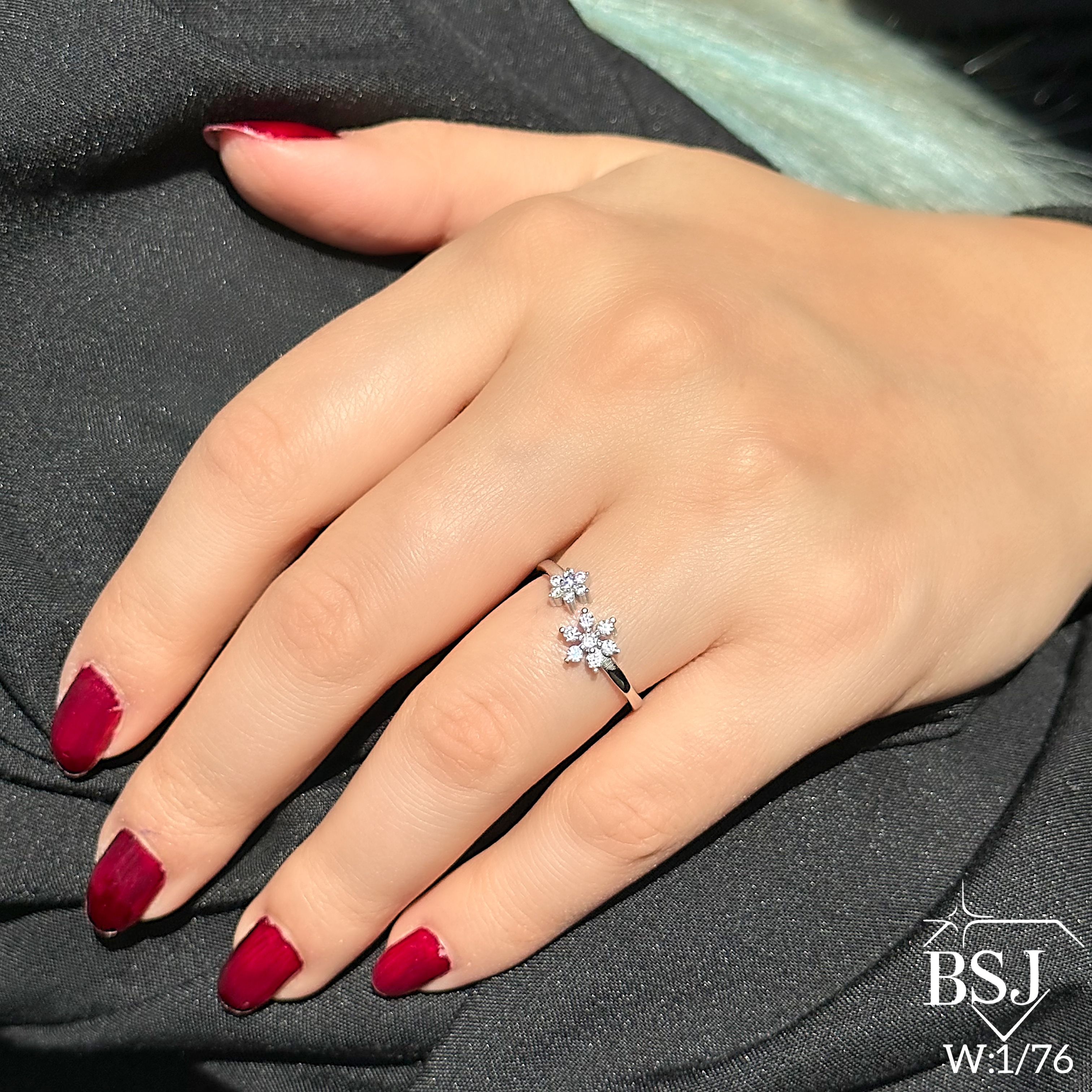 انگشتر نقره زنانه BSJ_R630 از انگشترهای خاص ساخته شده از نقره با عیار 925 می باشد.سنگ های برلیان از جنس اتمی زیرکونیا در ساختار آن به کار رفته است که به صورت میکروستینگ مخراج کاری شده و در برابر ضربه مقاوم است.آبکاری دو مرحله ای رودیوم(طلا سفید)، سبب کیفیت بی نظیر دوام رنگ آن شده است و به دلیل عدم استفاده از نیکل در ساختار آن، بدون حساسیت بوده و با پوست حساس سازگار است.به دلیل کیفیت فوق العاده و درخشش عالی، تفاوتی با نمونه طلا ندارد.وزن انگشتر 1.76 گرم می باشد.