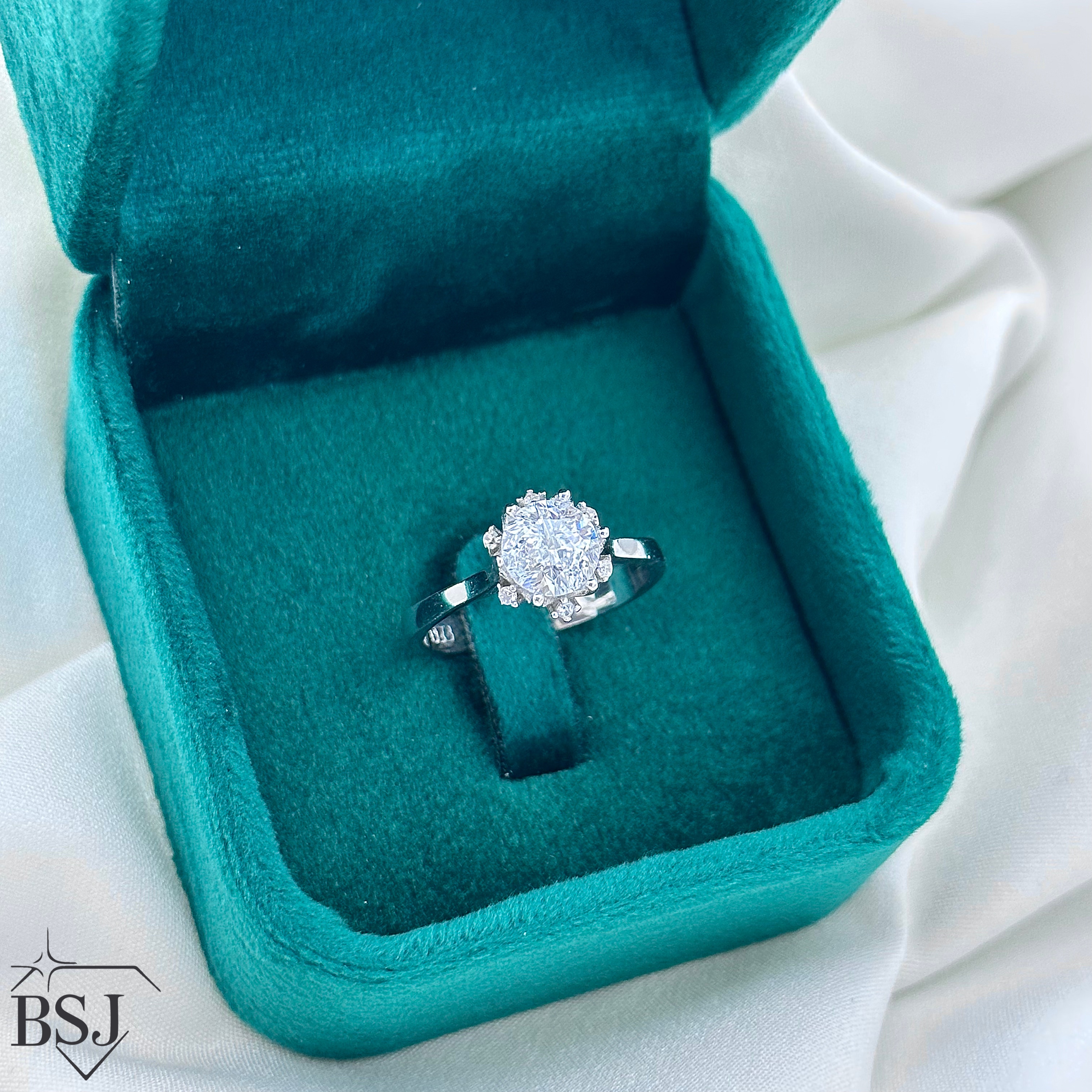 انگشتر نقره جواهری زنانه BSJ_r634 از انگشترهای زیبای ساخته شده از نقره با عیار 925 می باشد.سنگ به کار رفته در آن برلیان از جنس اتمی زیرکونیا می باشند.سنگ ها به صورت میکروستینگ مخراج کاری شده اند و در برابر ضربه مقاوم اند.آبکاری دو مرحله ای رودیوم(طلاسفید)، سبب کیفیت بی نظیر دوام رنگ آن شده است و به دلیل عدم استفاده از نیکل در ساختار آن،بدون حساسیت بوده و با پوست حساس سازگار است.به دلیل کیفیت فوق العاده و درخشش عالی، تفاوتی با نمونه طلا ندارد.وزن انگشتر 3.49 گرم می باشد.