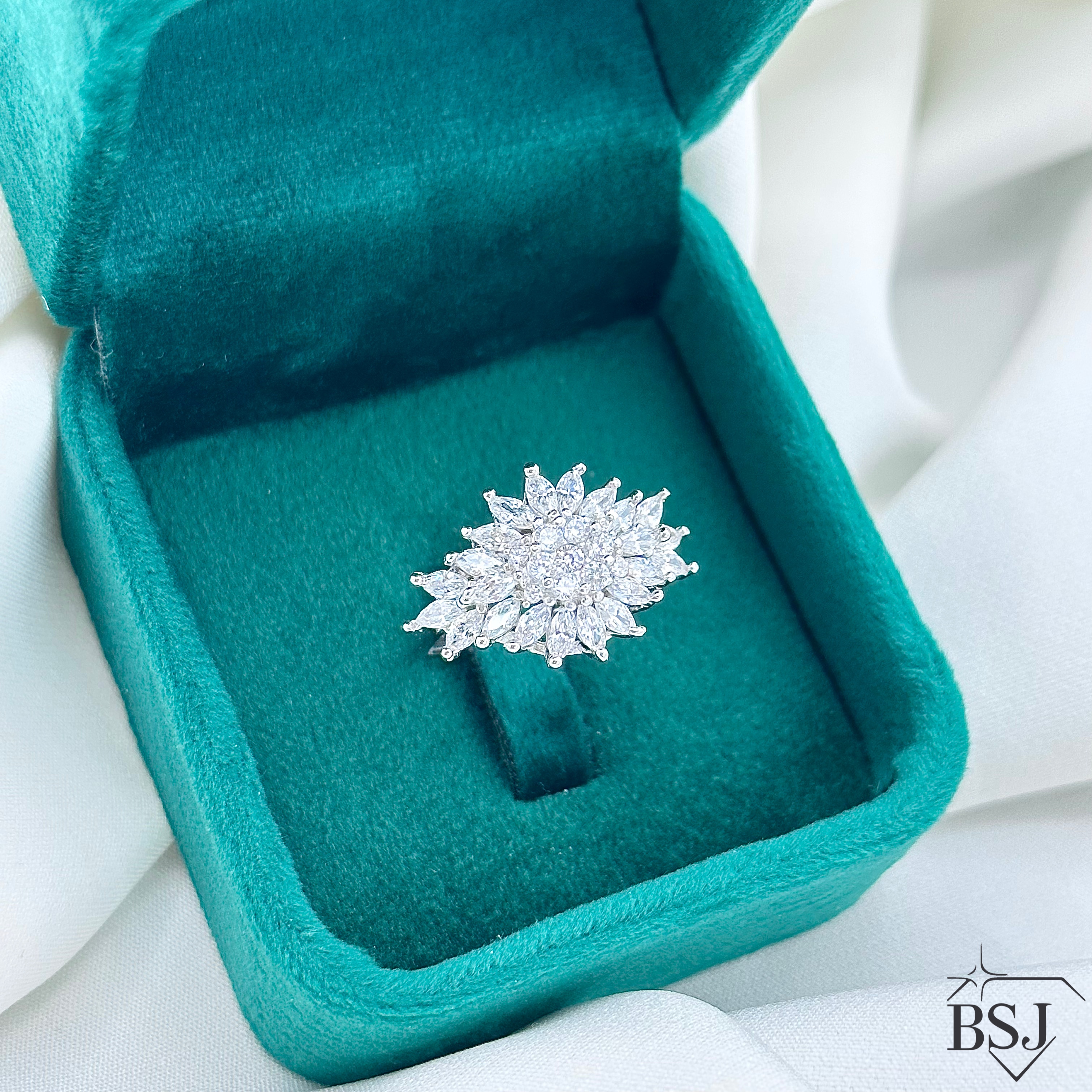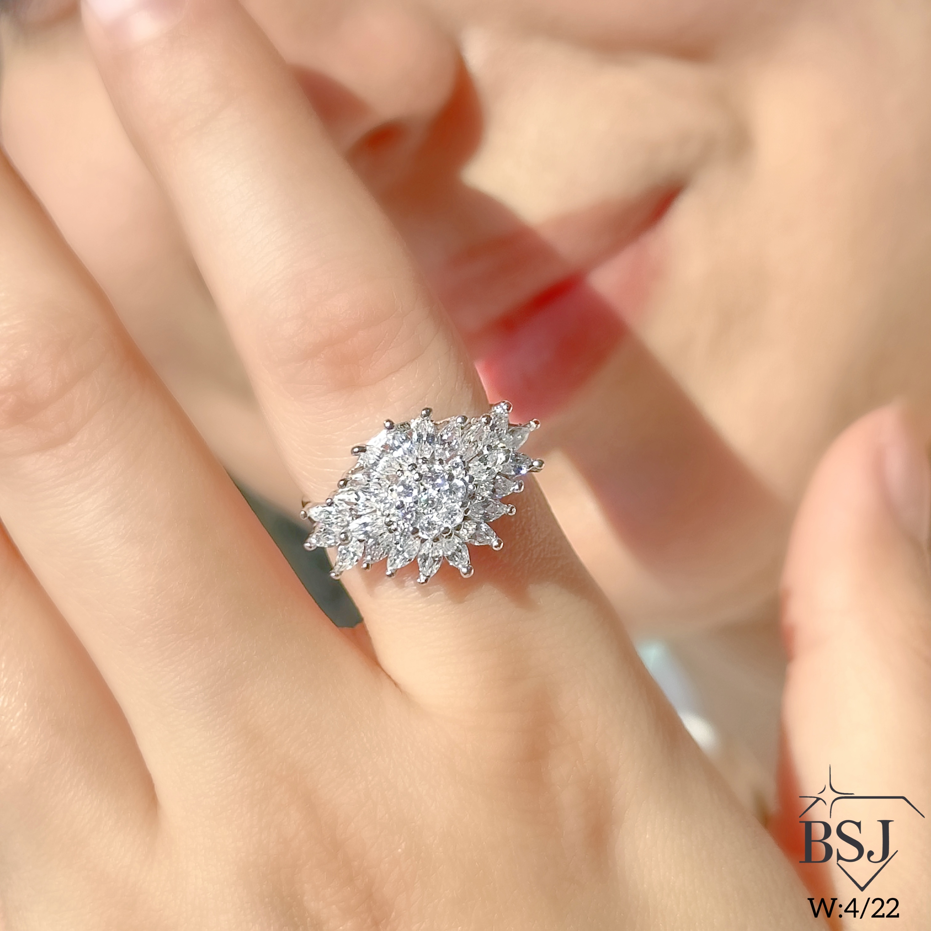انگشتر نقره زنانه BSJ_R645 یکی از انگشترهای چشم نواز ساخته شده از نقره با عیار 925 می باشد.سنگ های به کار رفته در آن برلیان از جنس اتمی زیرکونیا می باشند.سنگ ها به صورت میکروستینگ مخراج کاری شده اند و در برابر ضربه مقاوم اند.آبکاری دو مرحله ای رودیوم(طلا سفید)، سبب کیفیت بی نظیر دوام رنگ آن شده است و به دلیل عدم استفاده از نیکل در ساختار آن، بدون حساسیت بوده و با پوست حساس سازگار است.به دلیل کیفیت فوق العاده و درخشش عالی، تفاوتی با نمونه طلا ندارد.وزن انگشتر 4.22 گرم می باشد.