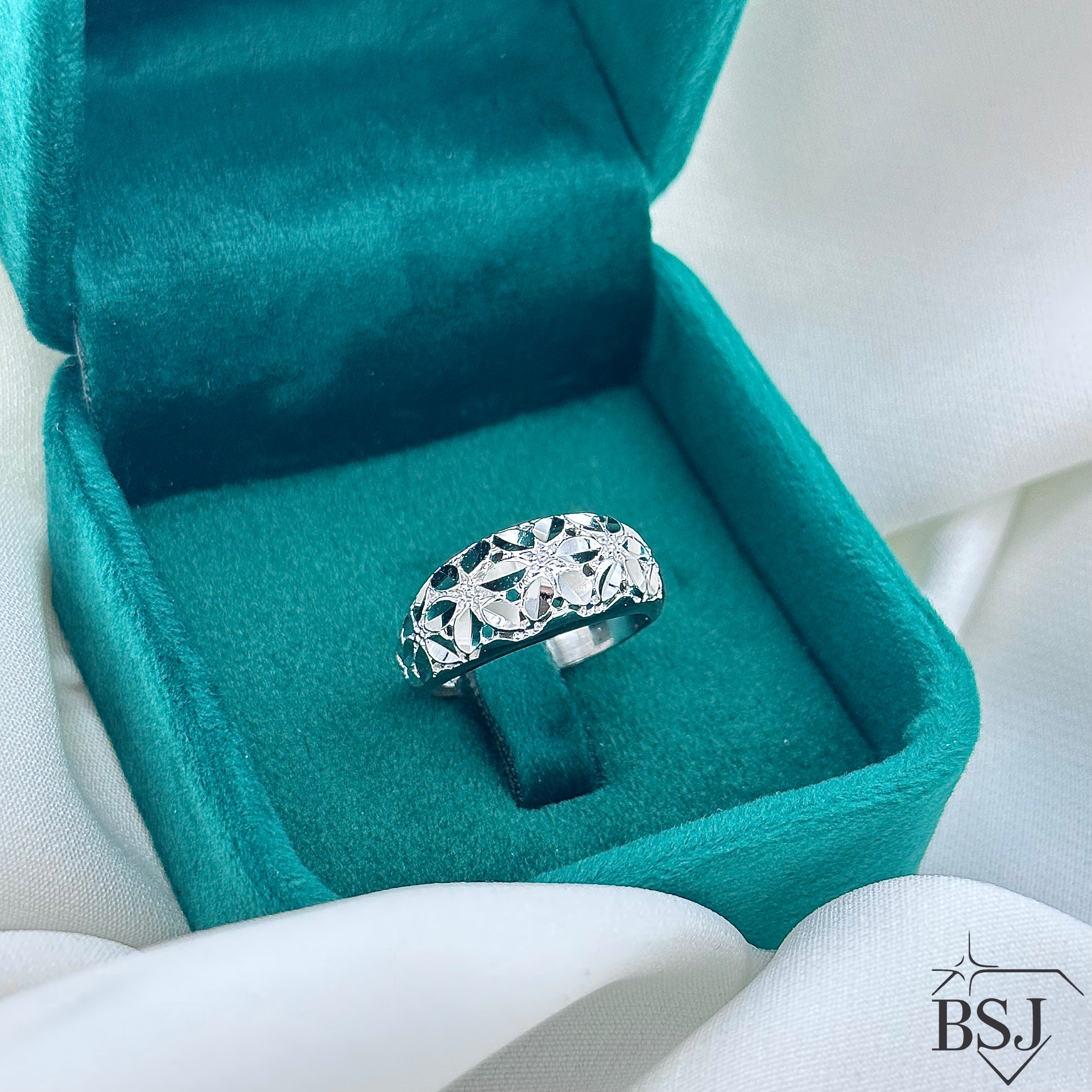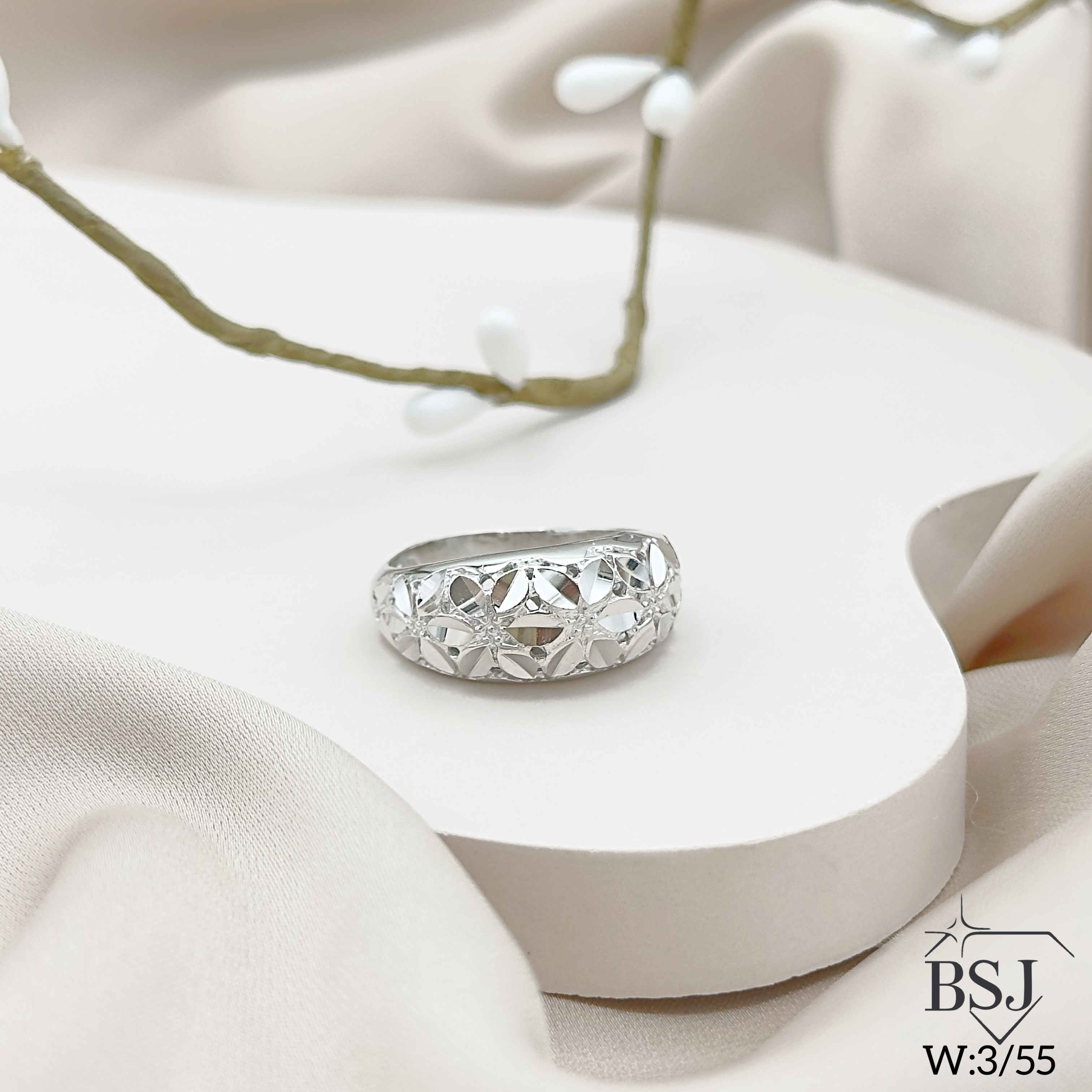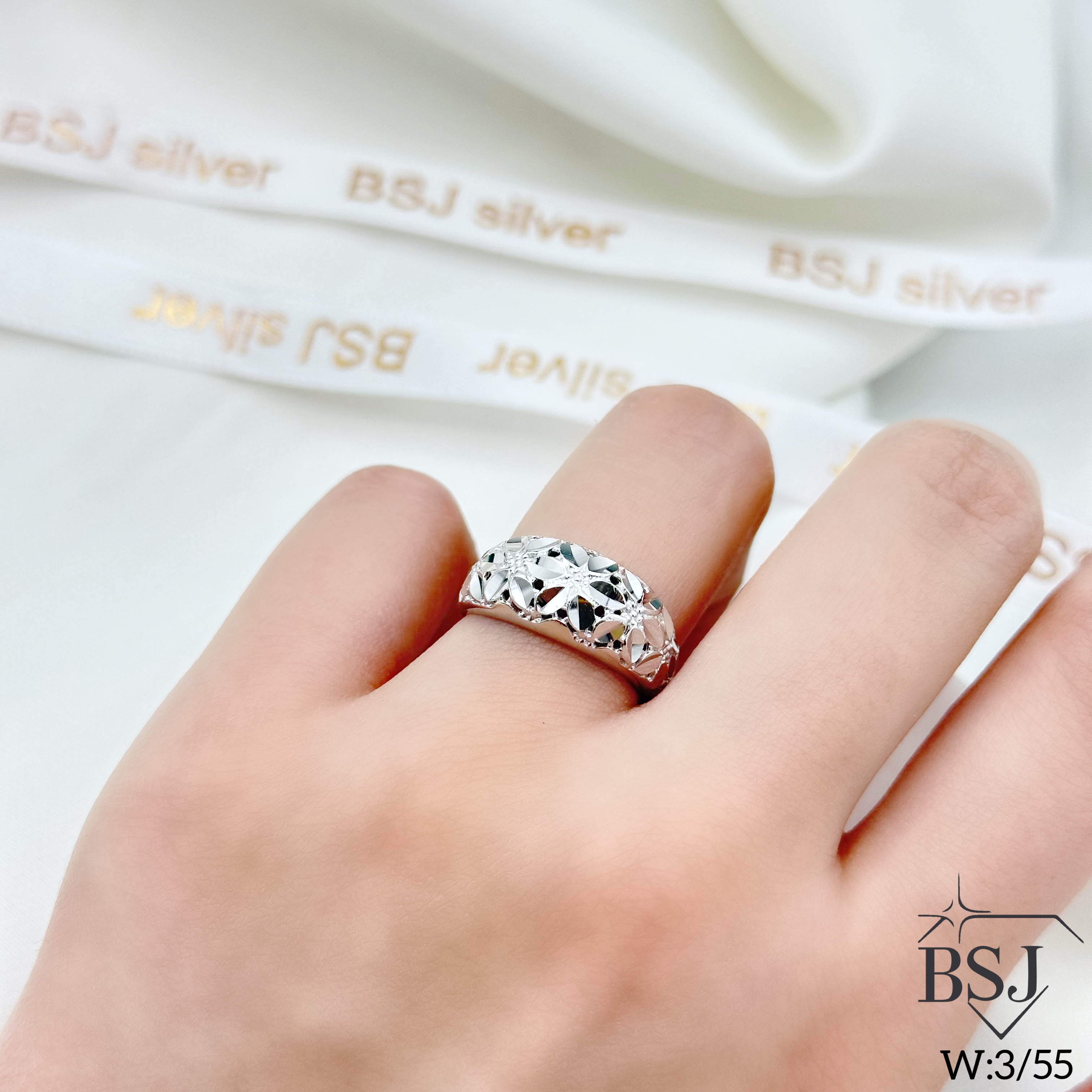 انگشتر نقره تراش خور زنانه BSJ_r653 یکی از انگشترهای جذاب ساخته شده از نقره با عیار 925 می باشد.این انگشتر تماما از جنس نقره بوده و نگینی در ساختار آن به کار نرفته است.آبکاری دو مرحله ای رودیوم(طلا سفید)، سبب کیفیت بی نظیر دوام رنگ آن شده است و به دلیل عدم استفاده از نیکل در ساختار آن، بدون حساسیت بوده و با پوست حساس سازگار است.به دلیل کیفیت فوق العاده و درخشش عالی، تفاوتی با نمونه طلا ندارد.وزن انگشتر 3.55 گرم می باشد.