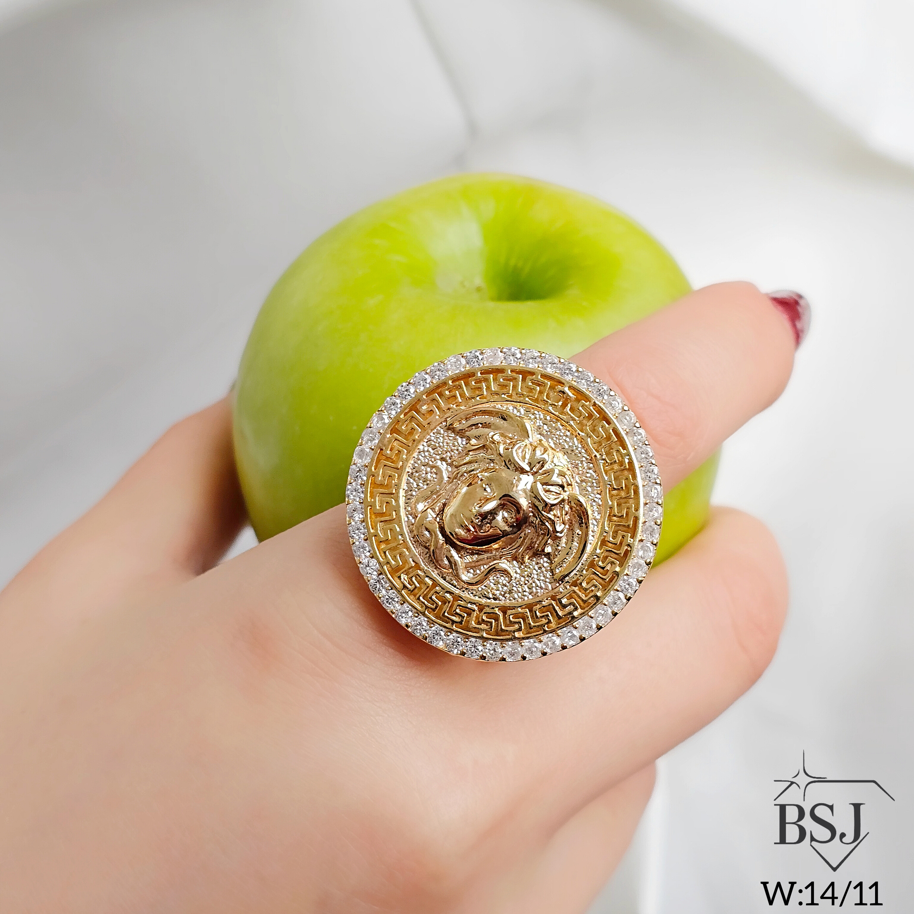 انگشتر نقره طرح ورساچه BSJ_R657 یکی از به روز ترین انگشترهای ساخته شده از نقره با عیار 925 می باشد.سنگ های به کار رفته در آن برلیان و از جنس اتمی زیرکونیا می باشند.سنگ ها به صورت میکروستینگ مخراج کاری شده اند و در برابر ضربه مقاوم اند.آبکاری دو مرحله ای طلای زرد، سبب کیفیت بی نظیر دوام رنگ آن شده است و به دلیل عدم استفاده از نیکل در ساختار آن، بدون حساسیت بوده و با پوست حساس سازگار است.به دلیل کیفیت فوق العاده و درخشش عالی، تفاوتی با نمونه طلا ندارد.وزن انگشتر 14.11گرم می باشد.