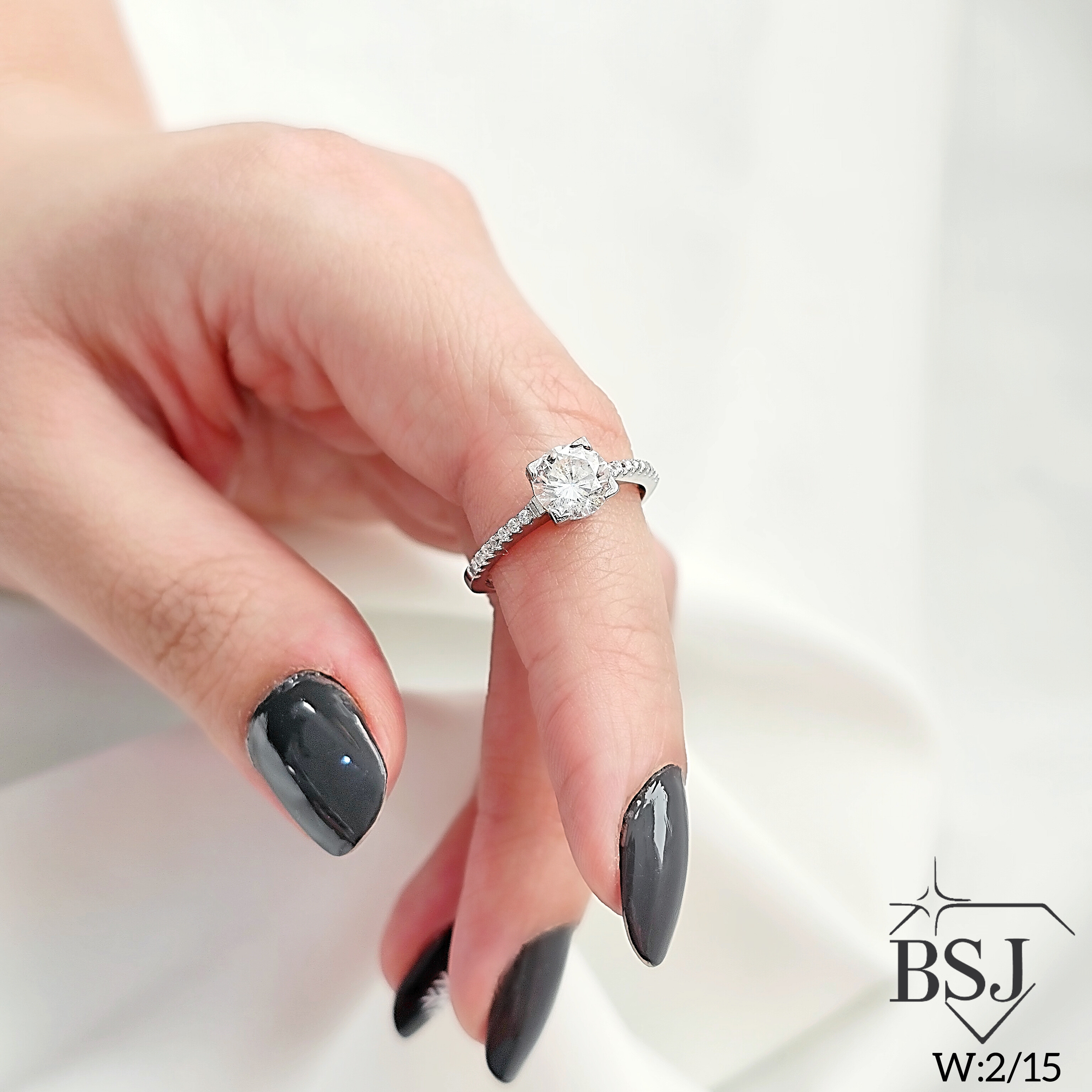 انگشتر نقره زنانه BSJ_R665 از انگشترهای چشم نواز ساخته شده از نقره با عیار 925 می باشد.سنگ های به کار رفته در آن برلیان از جنس اتمی زیرکونیا می باشند.سنگ ها به صورت میکروستینگ مخراج کاری شده اند و در برابر ضربه مقاوم اند.آبکاری دو مرحله ای رودیوم(طلا سفید)، سبب کیفیت بی نظیر دوام رنگ آن شده است و به دلیل عدم استفاده از نیکل در ساختار آن، بدون حساسیت بوده و با پوست حساس سازگار است.به دلیل کیفیت فوق العاده و درخشش عالی، تفاوتی با نمونه طلا ندارد.وزن انگشتر 2.15 گرم می باشد.