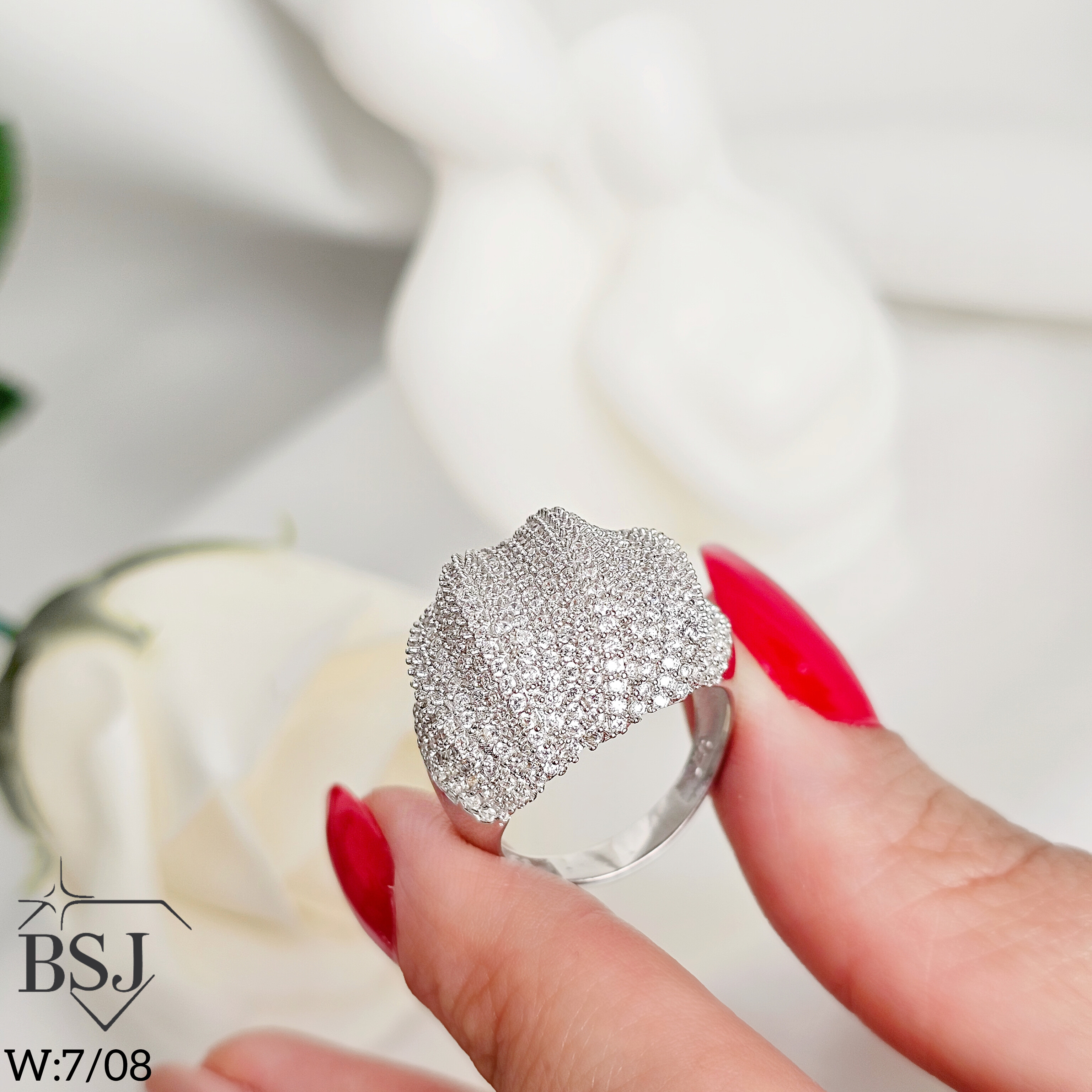 انگشتر نقره زنانه BSJ_R667 از انگشترهای خاص و مجلسی ساخته شده از نقره با عیار 925 می باشد.سنگ های برلیان از جنس اتمی زیرکونیا در ساختار آن به کار رفته است که به صورت میکروستینگ مخراج کاری شده و در برابر ضربه مقاوم است.آبکاری دو مرحله ای رودیوم(طلا سفید)، سبب کیفیت بی نظیر دوام رنگ آن شده است و به دلیل عدم استفاده از نیکل در ساختار آن، بدون حساسیت بوده و با پوست حساس سازگار است.به دلیل کیفیت فوق العاده و درخشش عالی، تفاوتی با نمونه طلا ندارد.وزن انگشتر 7.08 گرم می باشد.