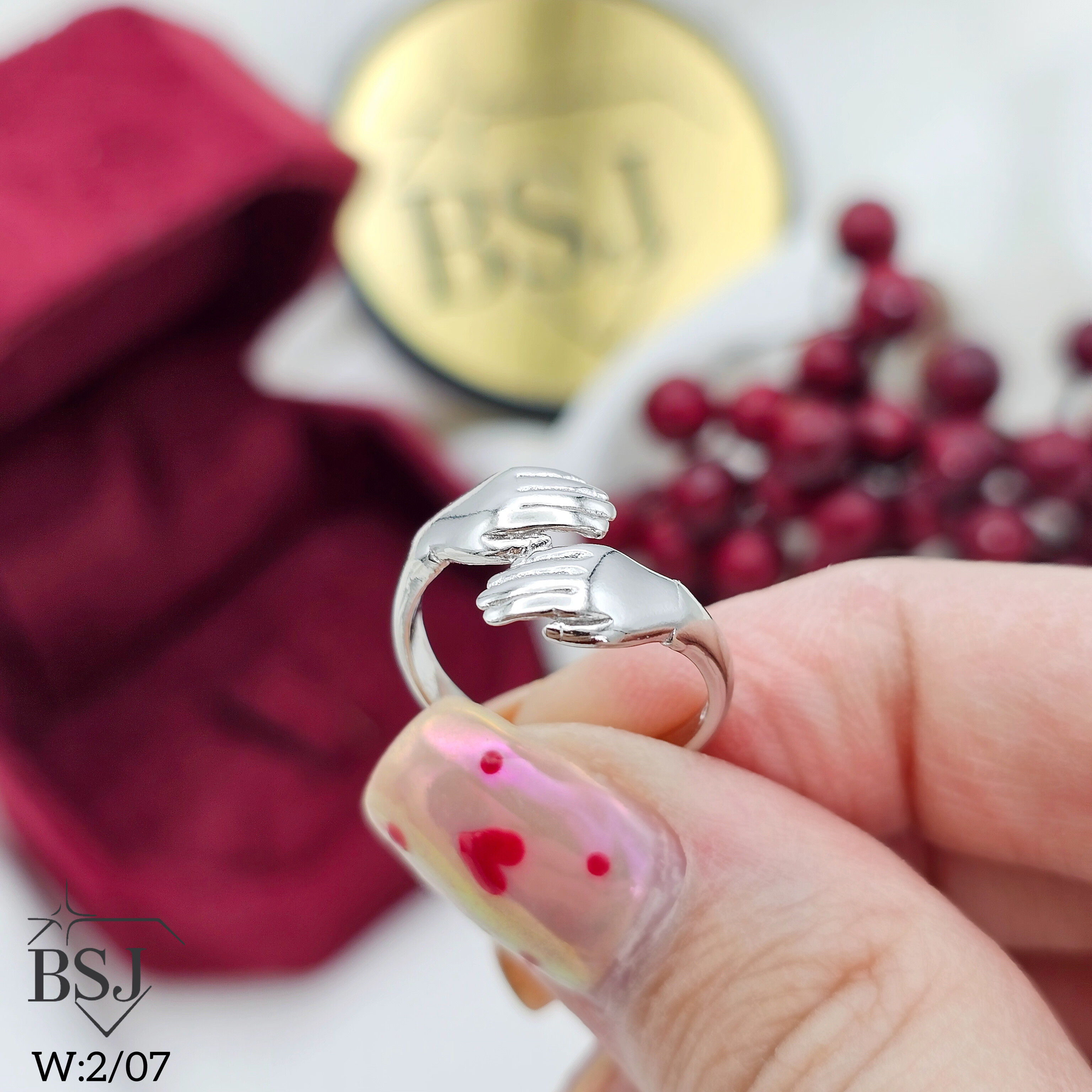 انگشتر آغوش نقره زنانه BSJ_R680 از انگشترهای زیبا و معنی دار ساخته شده از نقره با عیار 925 می باشد.آبکاری دو مرحله ای رودیوم(طلا سفید)، سبب کیفیت بی نظیر دوام رنگ آن شده است و به دلیل عدم استفاده از نیکل در ساختار آن، بدون حساسیت بوده و با پوست حساس سازگار است.به دلیل کیفیت فوق العاده و درخشش عالی، تفاوتی با نمونه طلا ندارد.وزن انگشتر 2.07 گرم می باشد.