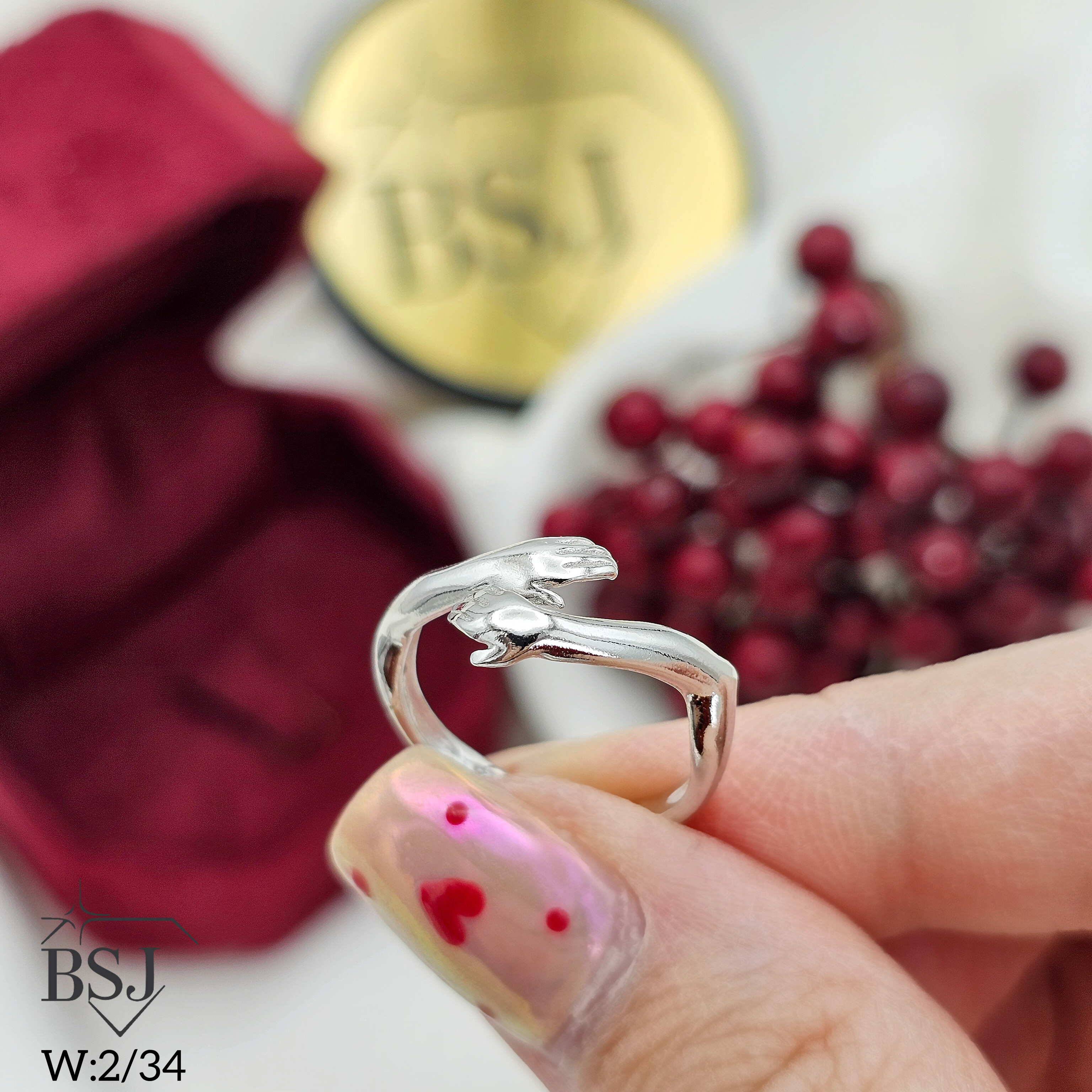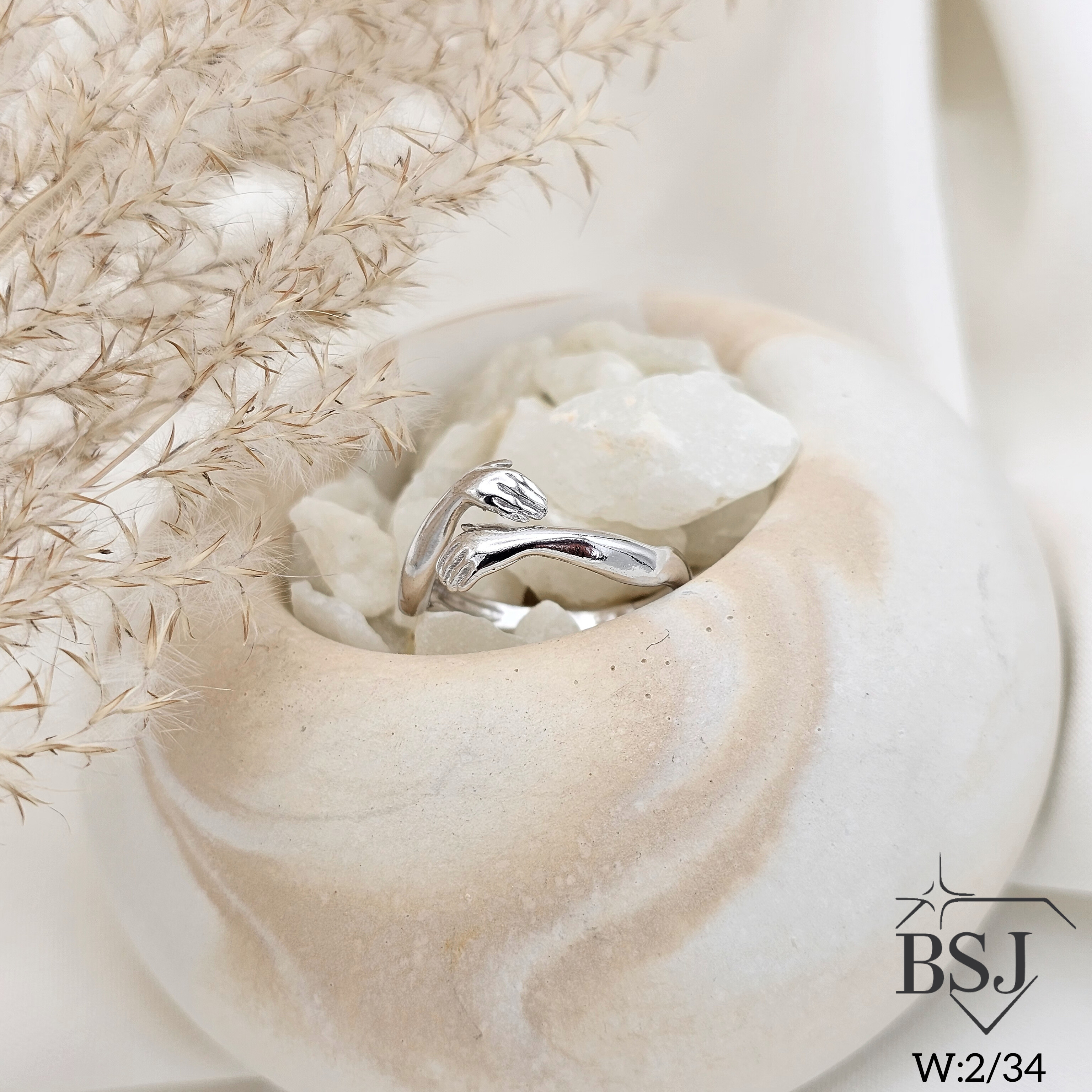 انگشتر آغوش نقره زنانه BSJ_R681 از انگشترهای زیبا و معنی دار ساخته شده از نقره با عیار 925 می باشد.آبکاری دو مرحله ای رودیوم(طلا سفید)، سبب کیفیت بی نظیر دوام رنگ آن شده است و به دلیل عدم استفاده از نیکل در ساختار آن، بدون حساسیت بوده و با پوست حساس سازگار است.به دلیل کیفیت فوق العاده و درخشش عالی، تفاوتی با نمونه طلا ندارد.وزن انگشتر 2.34 گرم می باشد.