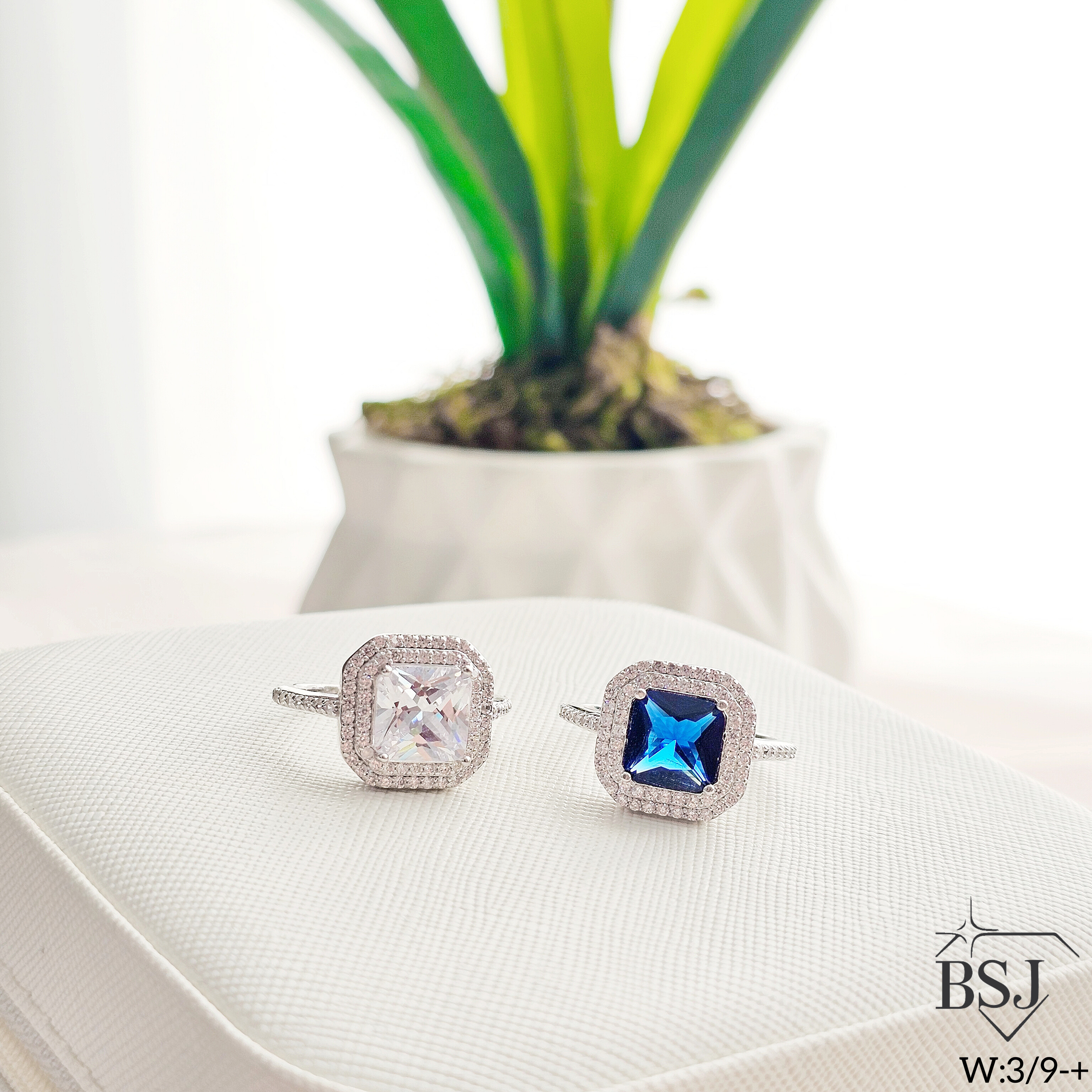 انگشتر نقره زنانه BSJ_R689 یکی از انگشترهای چشم نواز ساخته شده از نقره با عیار 925 می باشد.سنگ های به کار رفته در آن برلیان از جنس اتمی زیرکونیا و نگین های رنگی سنتتیک(آزمایشگاهی) می باشند.سنگ ها به صورت میکروستینگ مخراج کاری شده اند و در برابر ضربه مقاوم اند.آبکاری دو مرحله ای رودیوم(طلا سفید)، سبب کیفیت بی نظیر دوام رنگ آن شده است و به دلیل عدم استفاده از نیکل در ساختار آن، بدون حساسیت بوده و با پوست حساس سازگار است.به دلیل کیفیت فوق العاده و درخشش عالی، تفاوتی با نمونه طلا ندارد.وزن انگشتر 3.90 گرم می باشد.