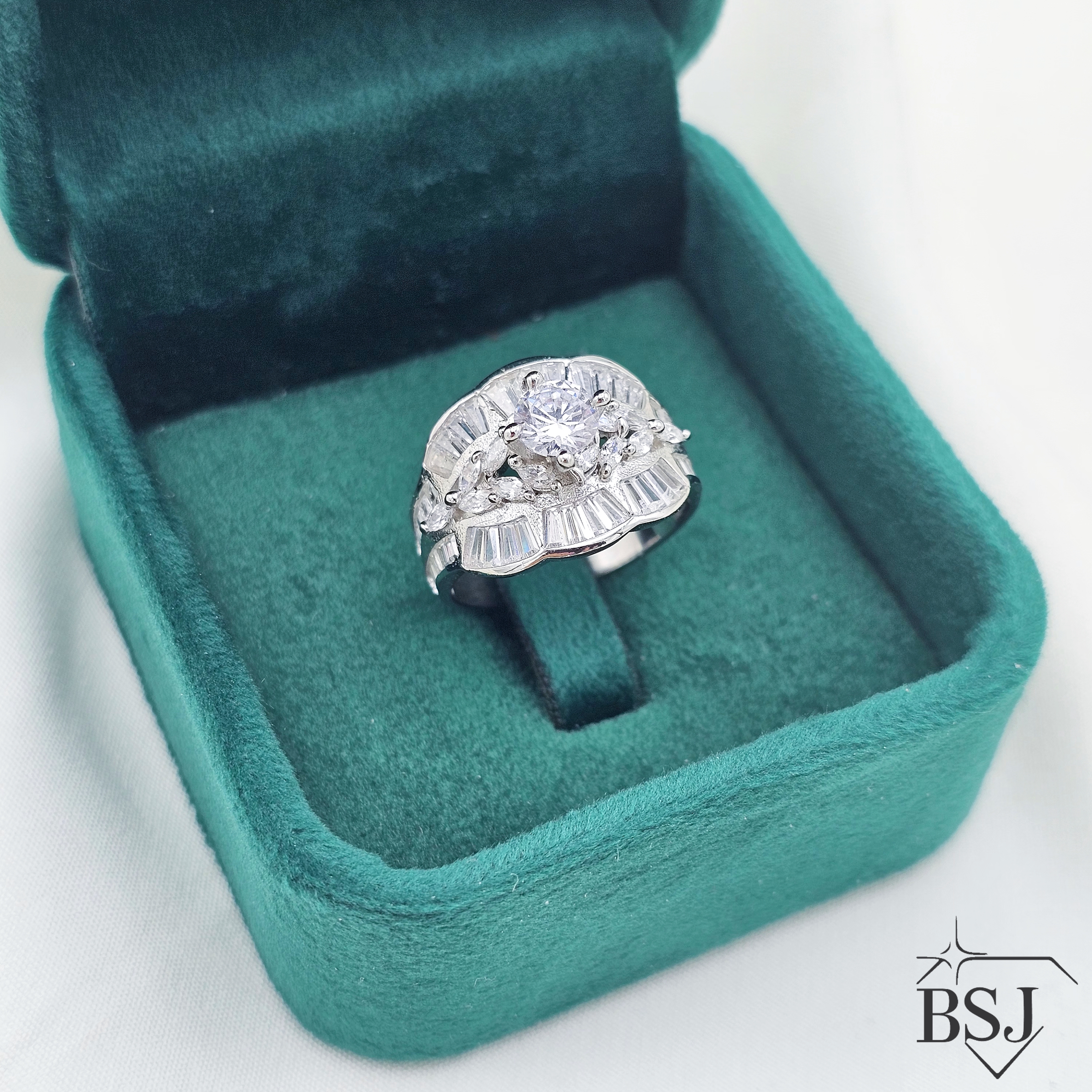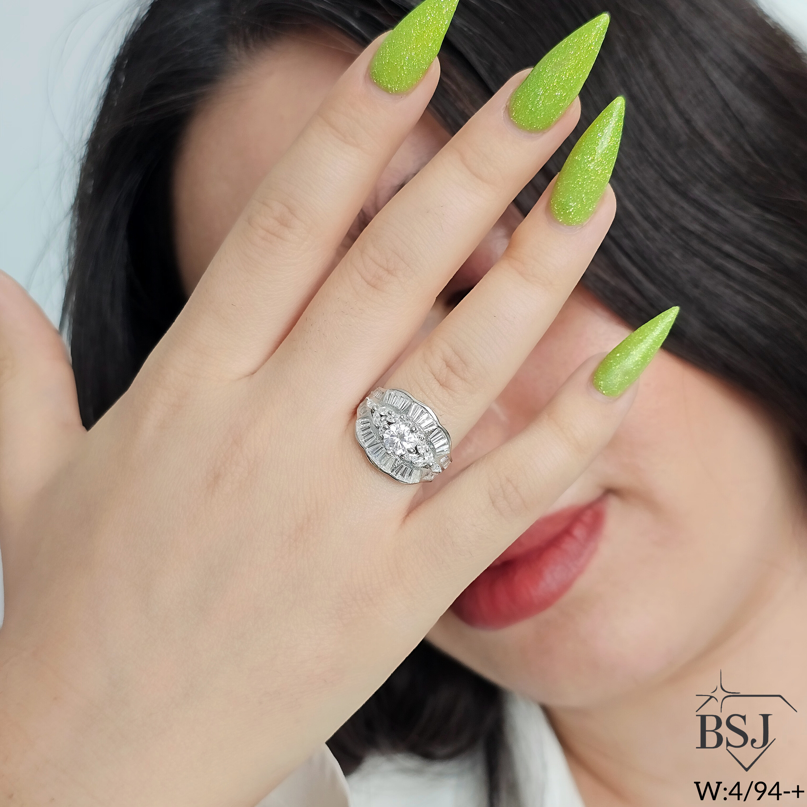 انگشتر نقره جواهری زنانه BSJ-R693 از انگشترهای خاص ساخته شده از نقره با عیار 925 می باشد.سنگ های برلیان از جنس اتمی زیرکونیا در ساختار آن به کار رفته است که به صورت میکروستینگ مخراج کاری شده و در برابر ضربه مقاوم است.آبکاری دو مرحله ای رودیوم(طلا سفید)، سبب کیفیت بی نظیر دوام رنگ آن شده است و به دلیل عدم استفاده از نیکل در ساختار آن، بدون حساسیت بوده و با پوست حساس سازگار است.به دلیل کیفیت فوق العاده و درخشش عالی، تفاوتی با نمونه طلا ندارد.وزن انگشتر 4.94 گرم می باشد.