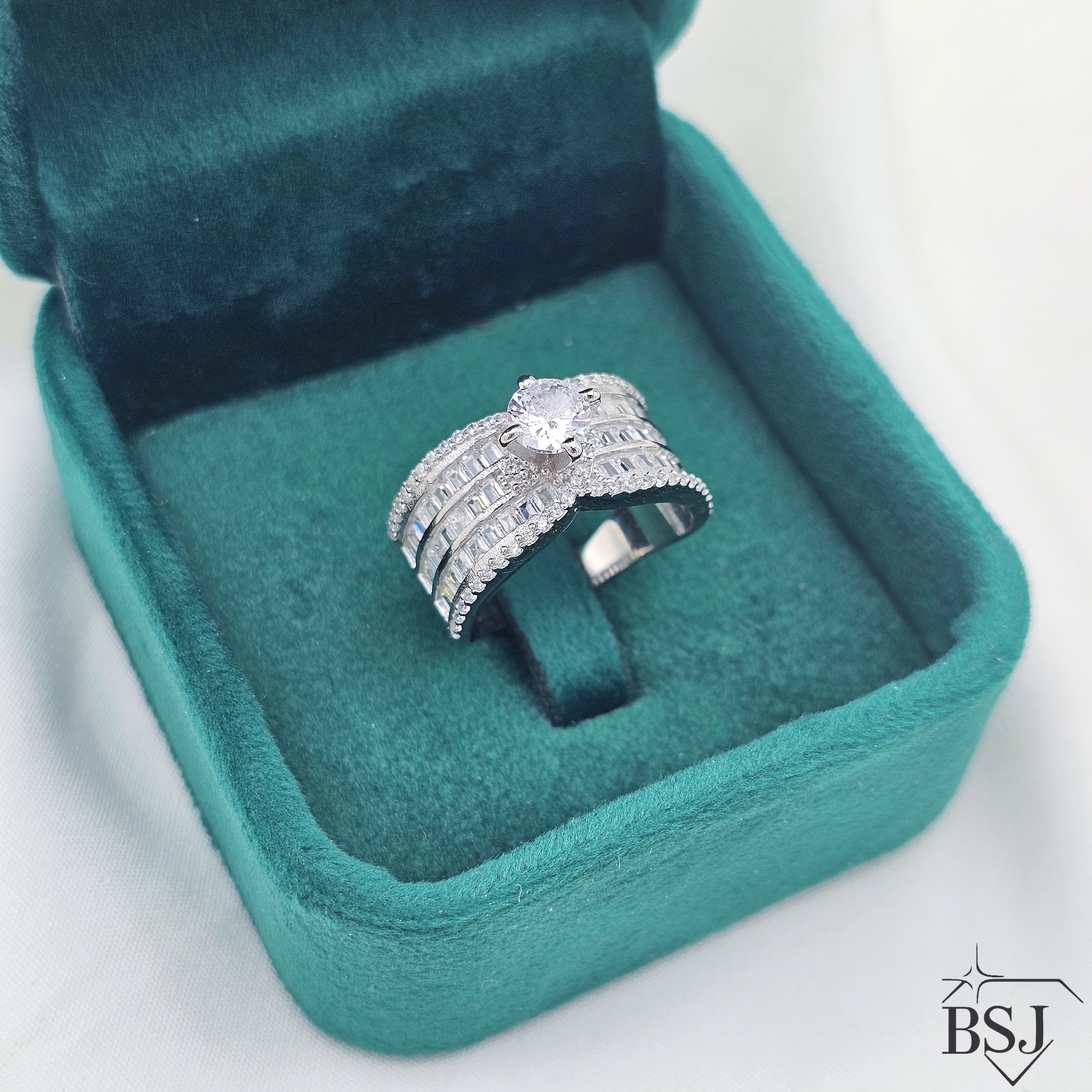 انگشتر نقره جواهری زنانه BSJ-R694 از انگشترهای خاص ساخته شده از نقره با عیار 925 می باشد.سنگ های برلیان از جنس اتمی زیرکونیا در ساختار آن به کار رفته است که به صورت میکروستینگ مخراج کاری شده و در برابر ضربه مقاوم است.آبکاری دو مرحله ای رودیوم(طلا سفید)، سبب کیفیت بی نظیر دوام رنگ آن شده است و به دلیل عدم استفاده از نیکل در ساختار آن، بدون حساسیت بوده و با پوست حساس سازگار است.به دلیل کیفیت فوق العاده و درخشش عالی، تفاوتی با نمونه طلا ندارد.وزن انگشتر 4.90 گرم می باشد.
