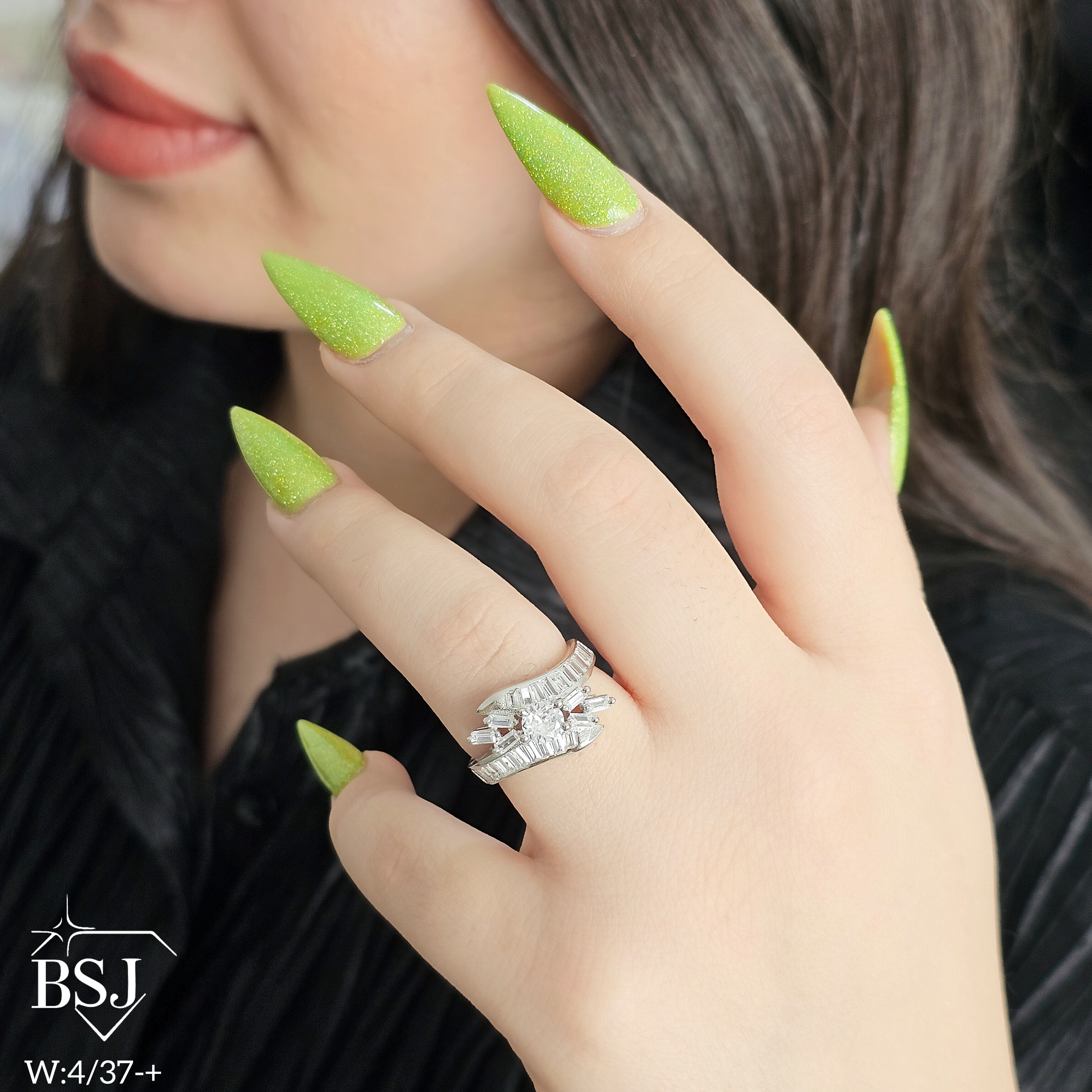 انگشتر نقره جواهری زنانه BSJ-R695 از انگشترهای خاص ساخته شده از نقره با عیار 925 می باشد.سنگ های برلیان از جنس اتمی زیرکونیا در ساختار آن به کار رفته است که به صورت میکروستینگ مخراج کاری شده و در برابر ضربه مقاوم است.آبکاری دو مرحله ای رودیوم(طلا سفید)، سبب کیفیت بی نظیر دوام رنگ آن شده است و به دلیل عدم استفاده از نیکل در ساختار آن، بدون حساسیت بوده و با پوست حساس سازگار است.به دلیل کیفیت فوق العاده و درخشش عالی، تفاوتی با نمونه طلا ندارد.وزن انگشتر 4.37 گرم می باشد.