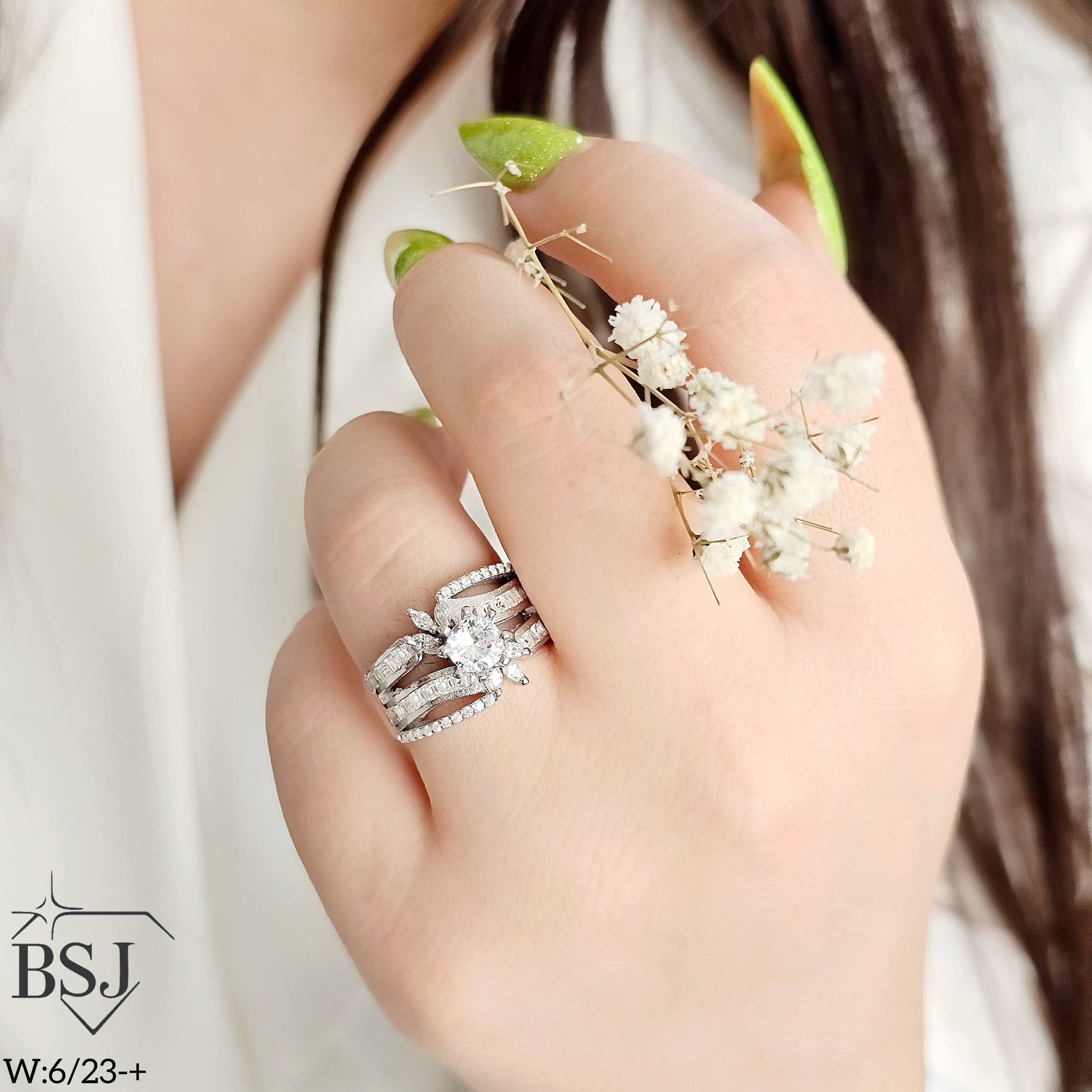 انگشتر نقره جواهری زنانه BSJ-R699 از انگشترهای خاص ساخته شده از نقره با عیار 925 می باشد.سنگ های برلیان از جنس اتمی زیرکونیا در ساختار آن به کار رفته است که به صورت میکروستینگ مخراج کاری شده و در برابر ضربه مقاوم است.آبکاری دو مرحله ای رودیوم(طلا سفید)، سبب کیفیت بی نظیر دوام رنگ آن شده است و به دلیل عدم استفاده از نیکل در ساختار آن، بدون حساسیت بوده و با پوست حساس سازگار است.به دلیل کیفیت فوق العاده و درخشش عالی، تفاوتی با نمونه طلا ندارد.وزن انگشتر 6.23 گرم می باشد.