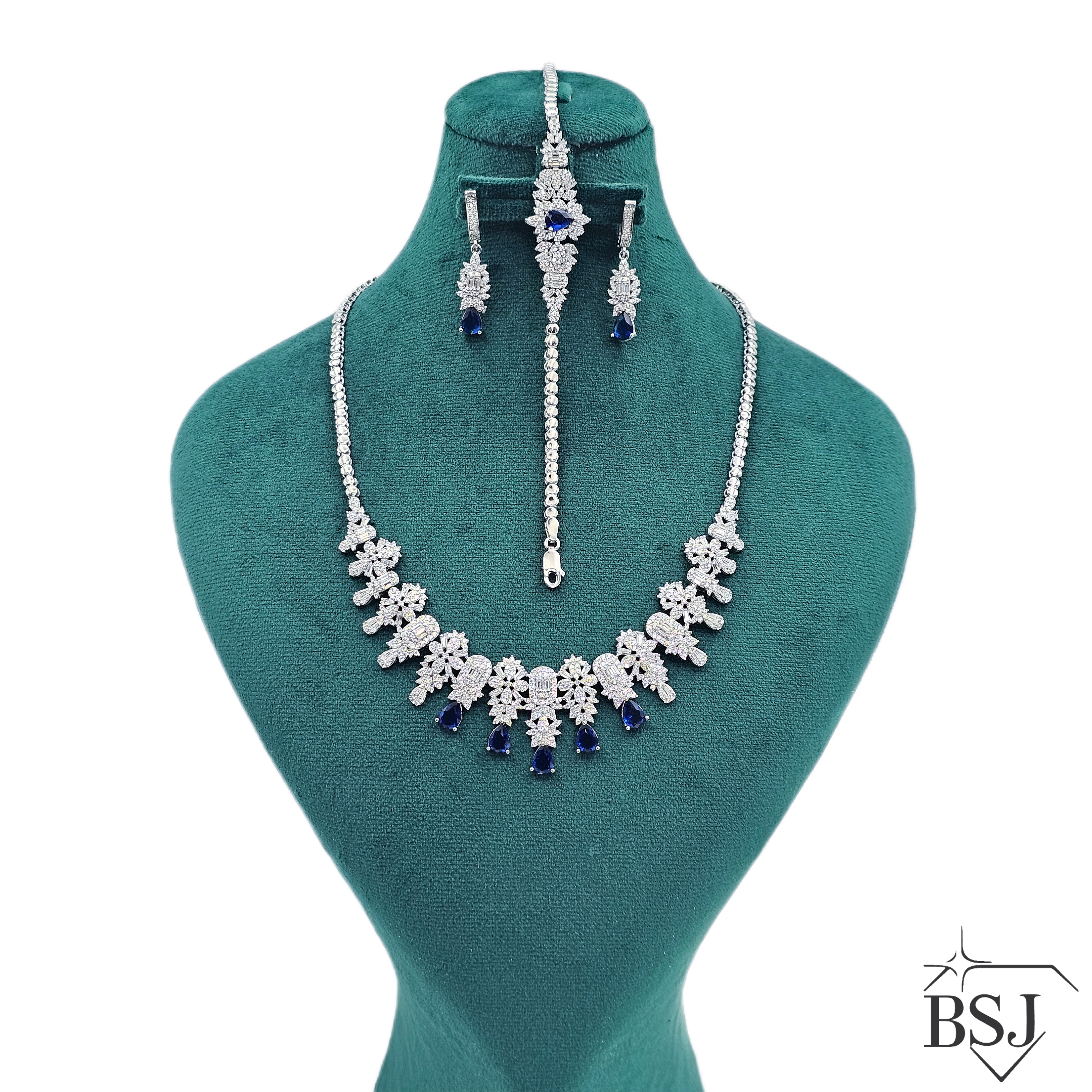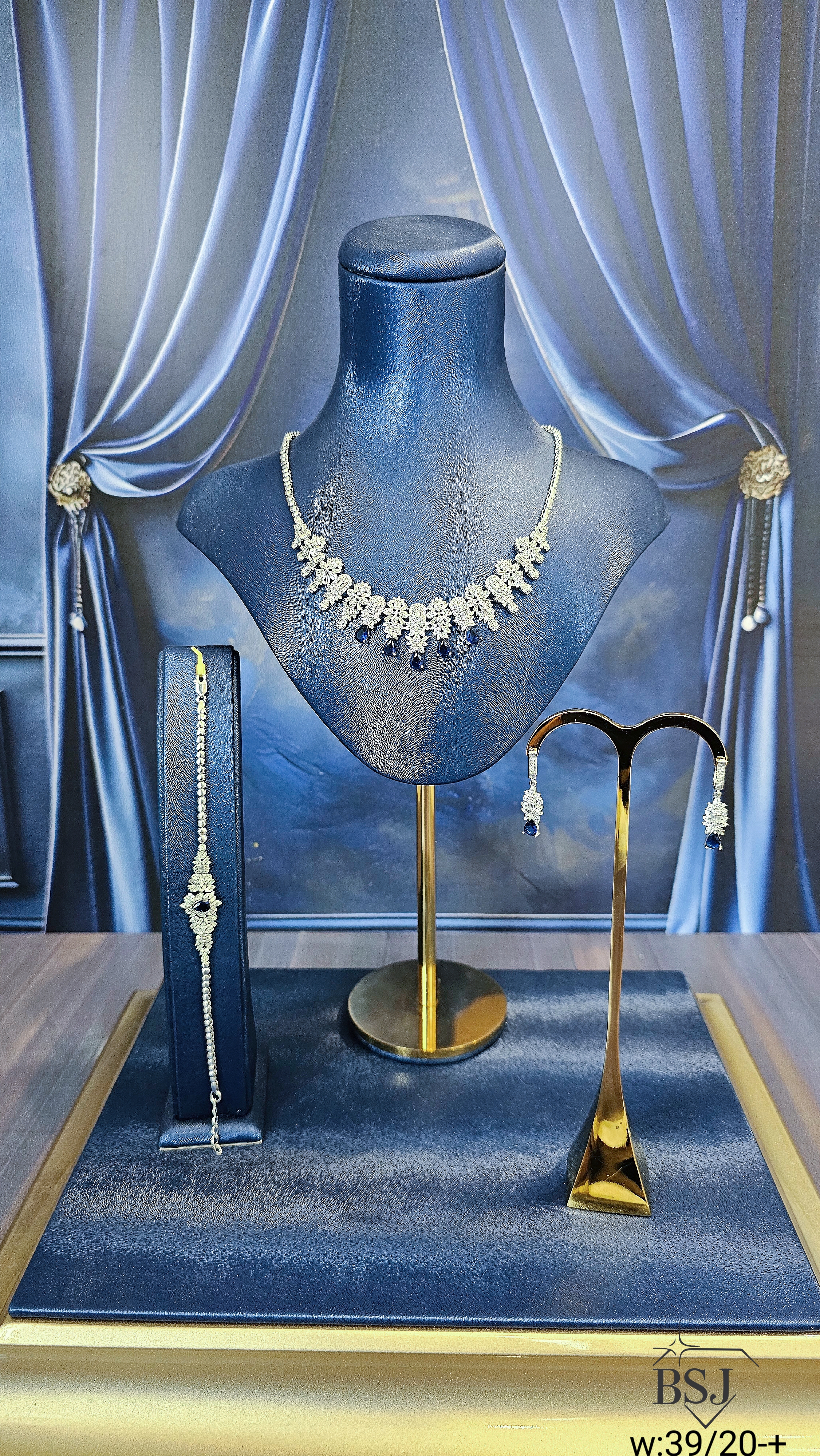 سرویس نقره جواهری زنانه BSJ_S592 از سرویس های شیک و لوکس ساخته شده از نقره با عیار 925 می باشد.سنگ های به کار رفته در آن برلیان ، مارکیز و امرالد از جنس اتمی زیرکونیا و سنگ های سنتتیک (آزمایشگاهی) می باشند که به صورت میکروستینگ مخراج کاری شده اند و در برابر ضربه مقاوم اند.آبکاری دو مرحله ای رودیوم (طلا سفید)، سبب کیفیت بی نظیر دوام رنگ آن شده است و به دلیل عدم استفاده از نیکل در ساختار آن،بدون حساسیت بوده و با پوست حساس سازگار است.به دلیل کیفیت فوق العاده و درخشش عالی سنگ ها، تفاوتی با نمونه طلا ندارد.وزن سرویس39.12 گرم می باشد.