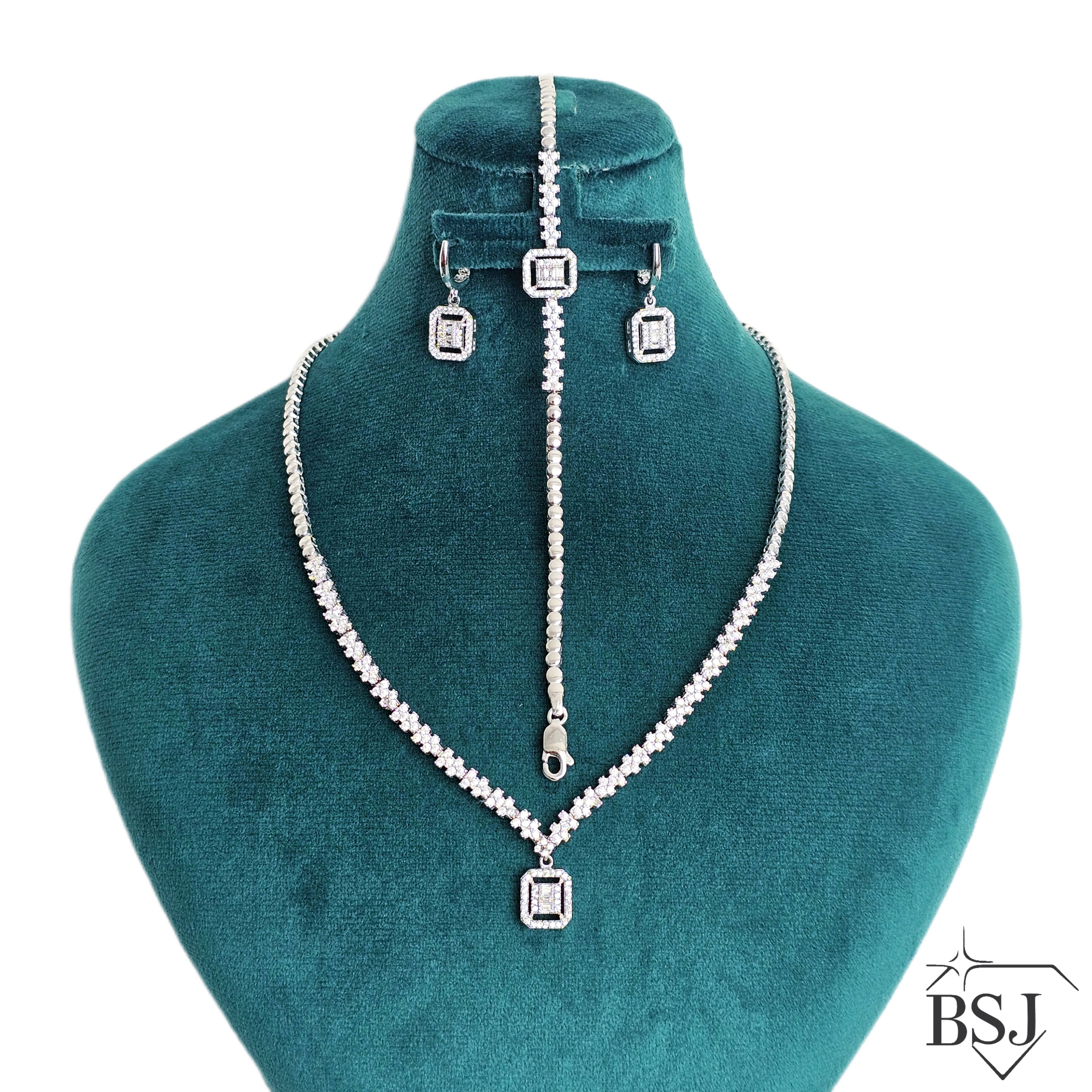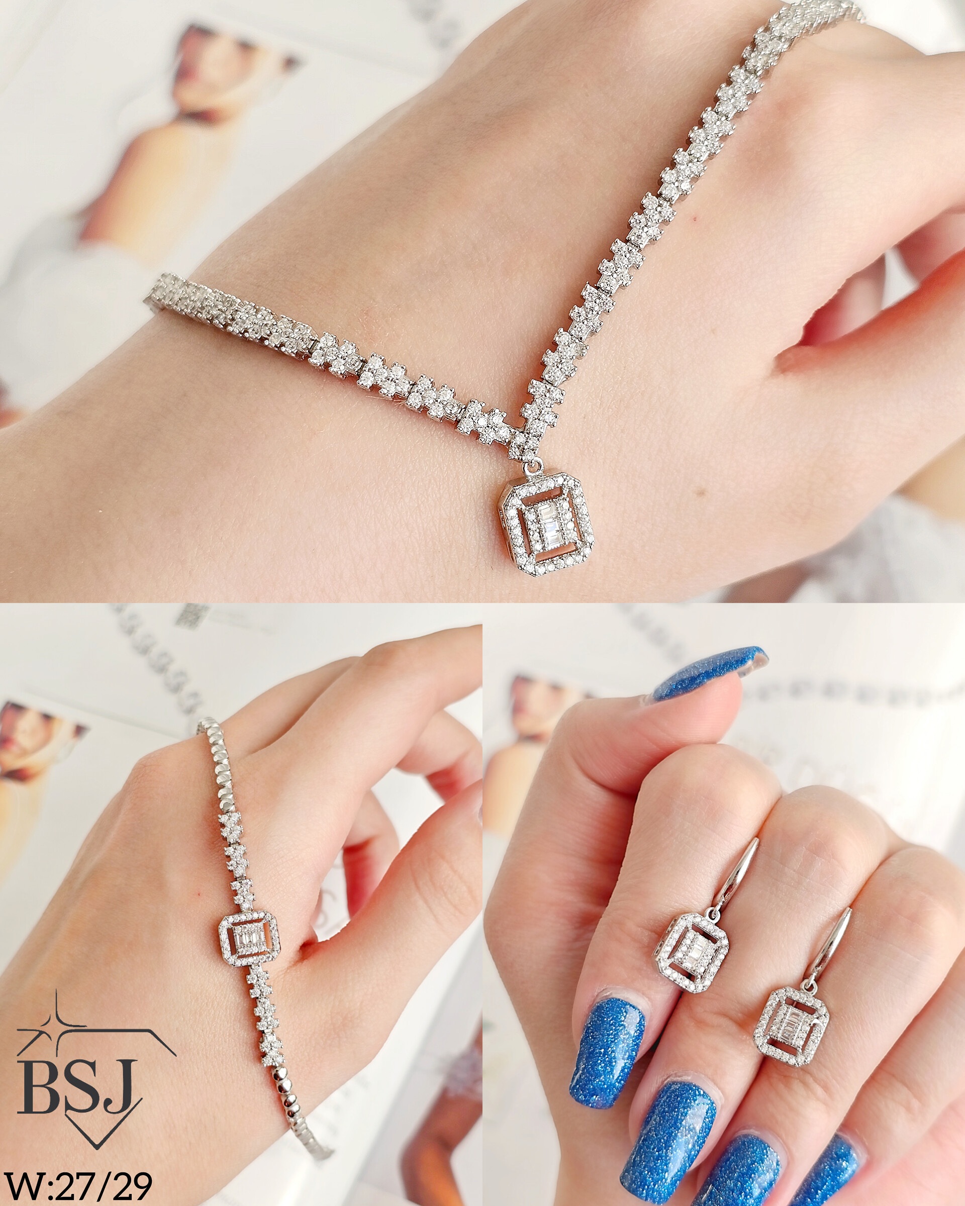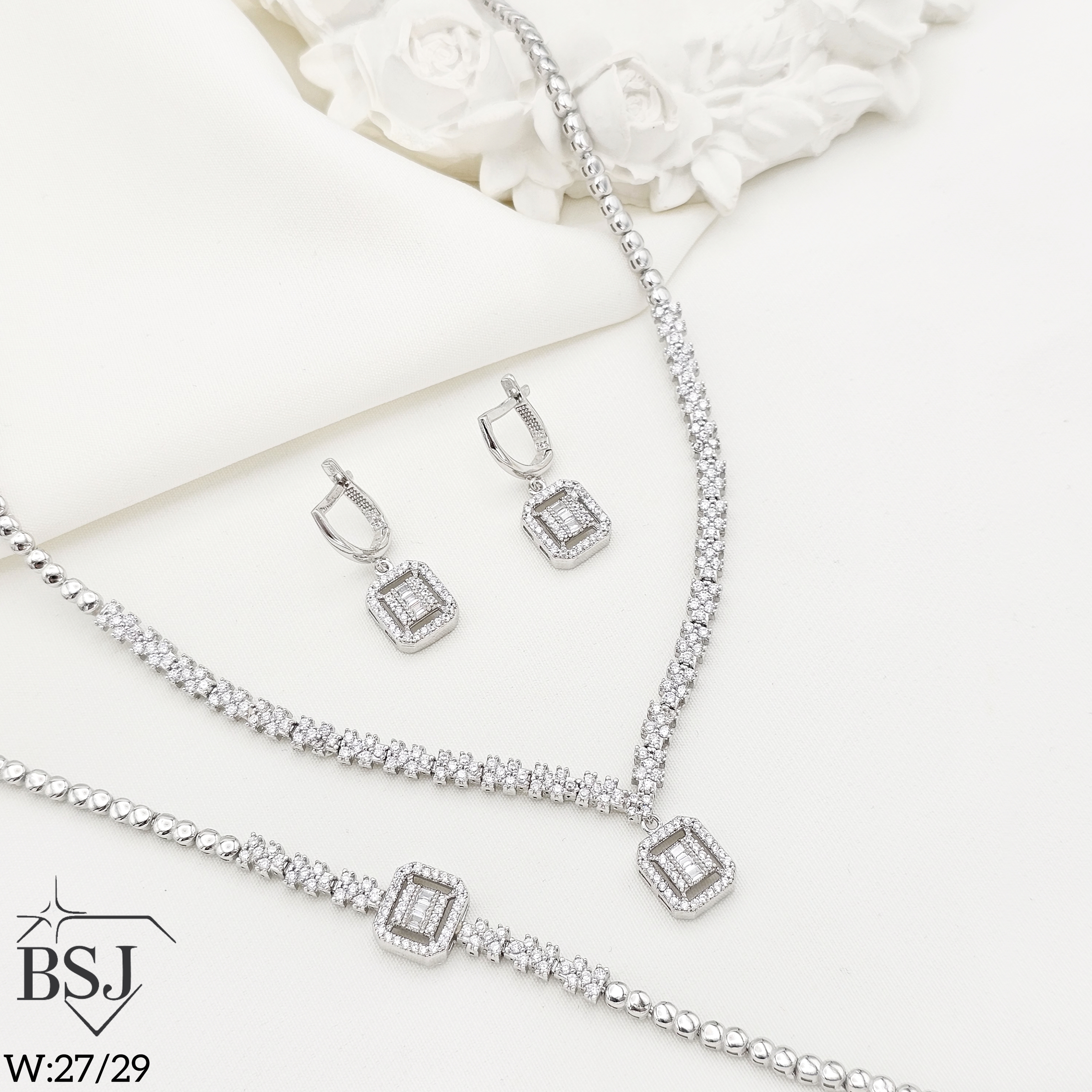 سرویس نقره جواهری زنانه BSJ_S612 از سرویس های مجلسی ساخته شده از نقره با عیار 925 می باشد.سنگ های به کار رفته در آن برلیان و از جنس اتمی زیرکونیا و نگین های امرالد می باشند که به صورت میکروستینگ مخراج کاری شده اند و در برابر ضربه مقاوم اند.آبکاری دو مرحله ای رودیوم (طلا سفید)، سبب کیفیت بی نظیر دوام رنگ آن شده است و به دلیل عدم استفاده از نیکل در ساختار آن، بدون حساسیت بوده و با پوست حساس سازگار است.به دلیل کیفیت فوق العاده و درخشش عالی سنگ ها، تفاوتی با نمونه طلا ندارد.وزن سرویس 27.29 گرم می باشد.