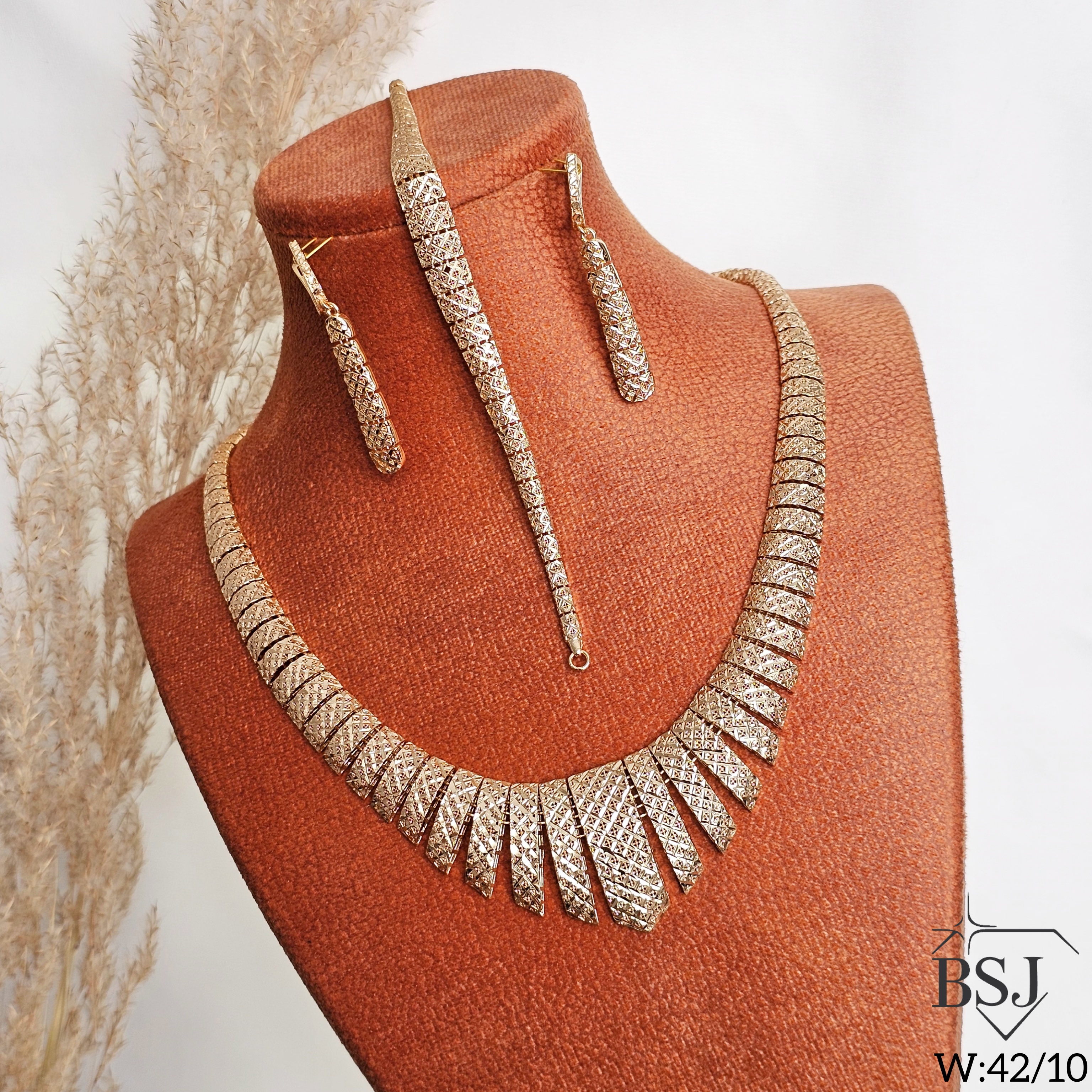 سرویس نقره تراش زنانه BSJ_S620 از سرویس های مجلسی ساخته شده از نقره با عیار 925 می باشد.این سرویس زیبا، بدون نگین و کاملا تراش بوده است.آبکاری طلای دو مرحله ای ، سبب کیفیت بی نظیر دوام رنگ آن شده است و به دلیل عدم استفاده از نیکل در ساختار آن، بدون حساسیت بوده و با پوست حساس سازگار است.به دلیل کیفیت فوق العاده آبکاری آن، تفاوتی با نمونه طلا ندارد.وزن سرویس 42.10 گرم می باشد.