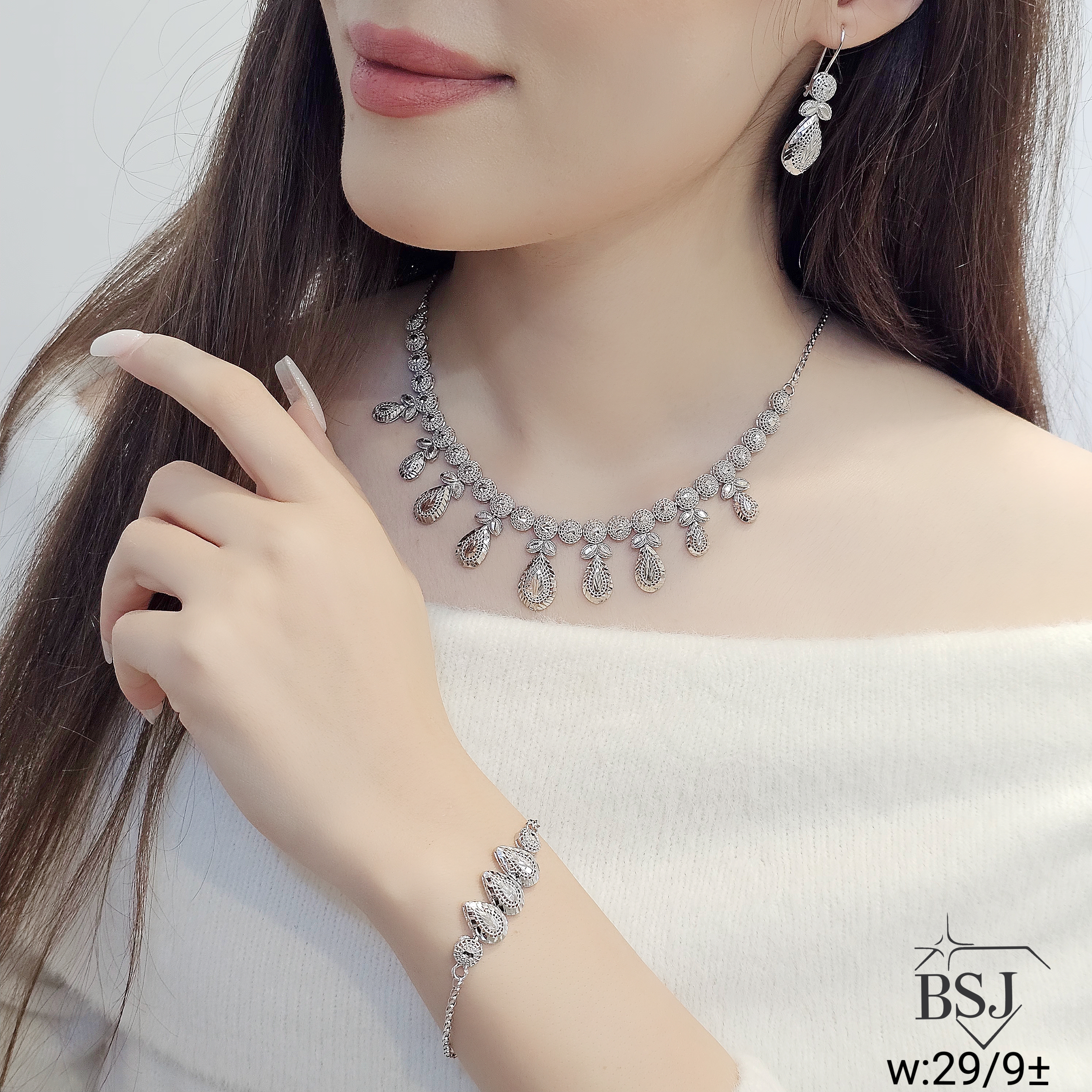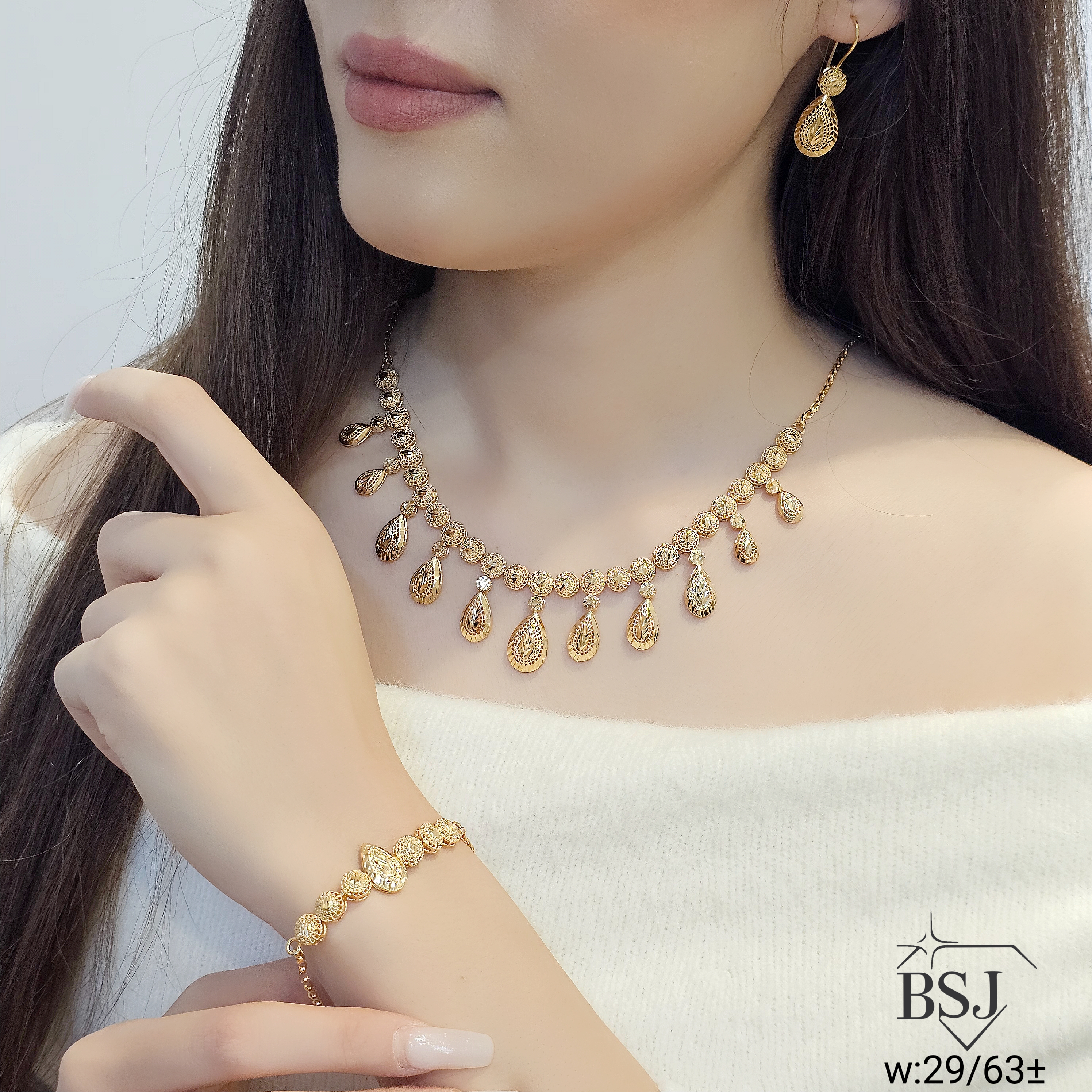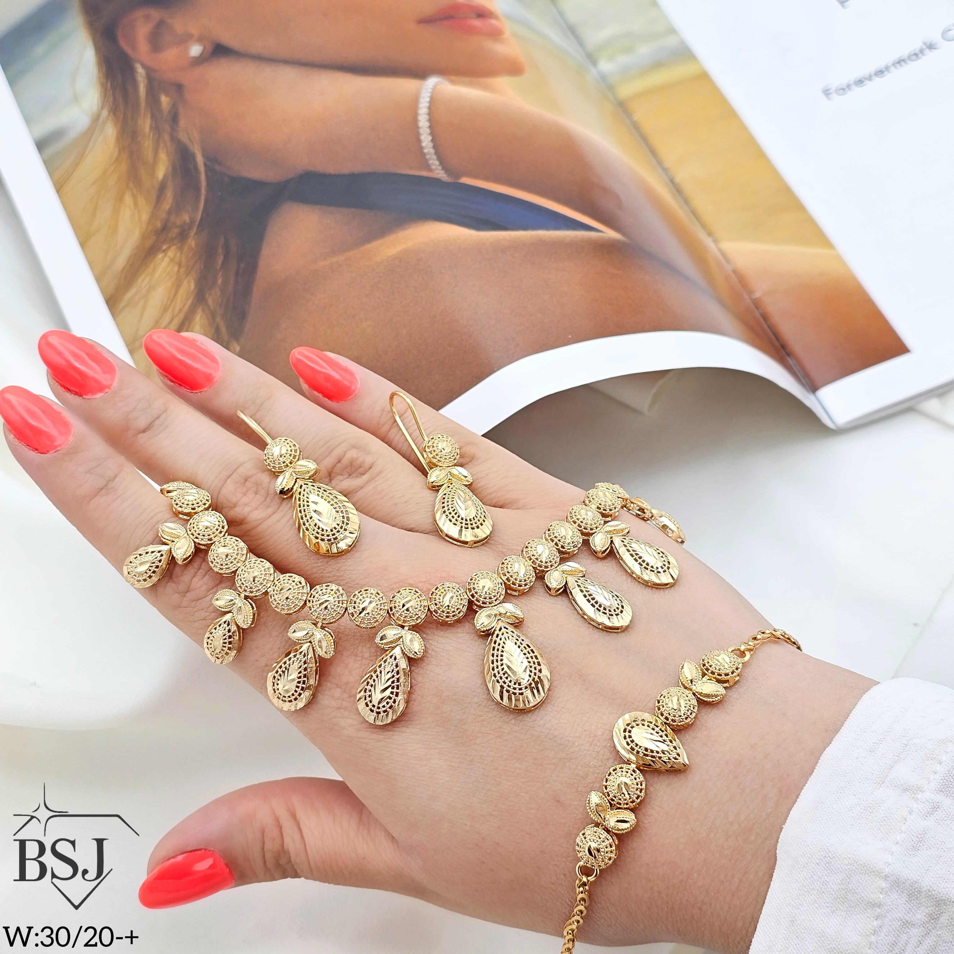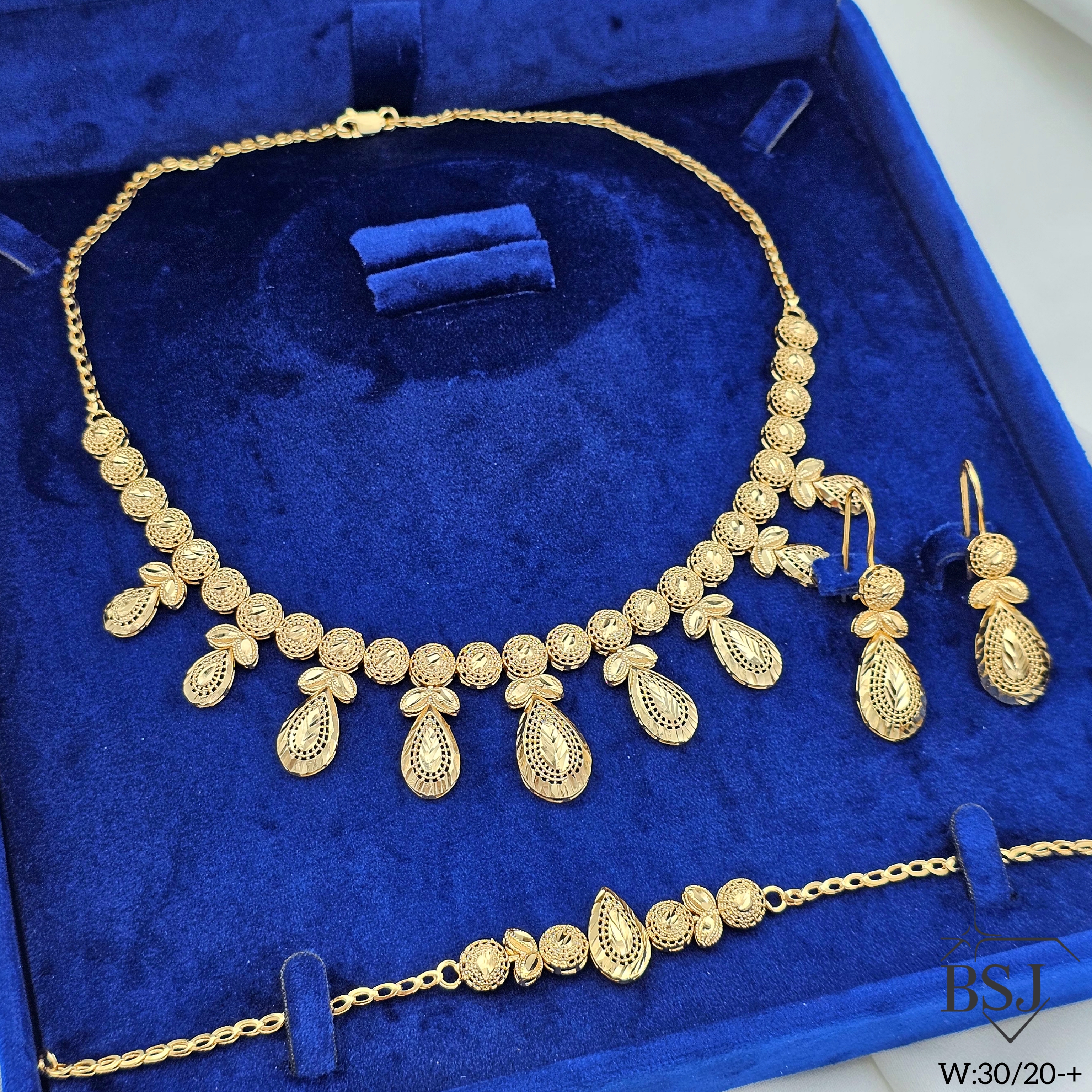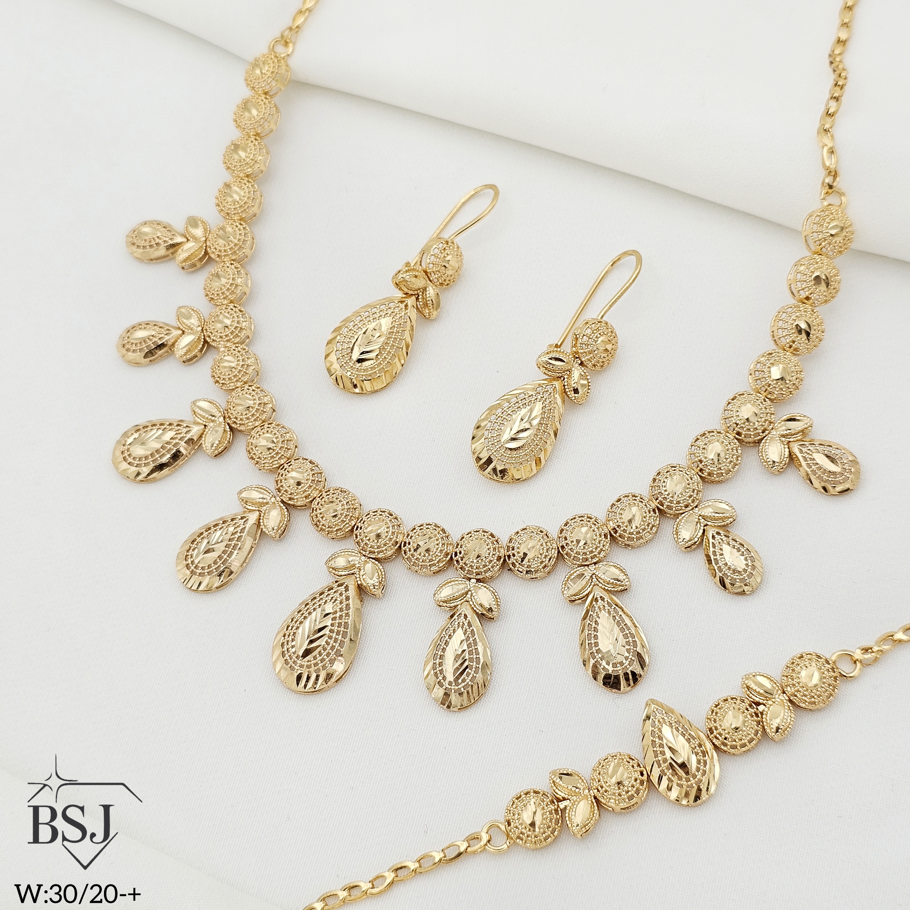 سرویس نقره تراش زنانه BSJ_S630 از سرویس های مجلسی ساخته شده از نقره با عیار 925 می باشد.این سرویس زیبا، بدون نگین و کاملا تراش بوده است.آبکاری طلای دو مرحله ای ، سبب کیفیت بی نظیر دوام رنگ آن شده است و به دلیل عدم استفاده از نیکل در ساختار آن، بدون حساسیت بوده و با پوست حساس سازگار است.به دلیل کیفیت فوق العاده آبکاری آن، تفاوتی با نمونه طلا ندارد.وزن سرویس 30.20 گرم می باشد.