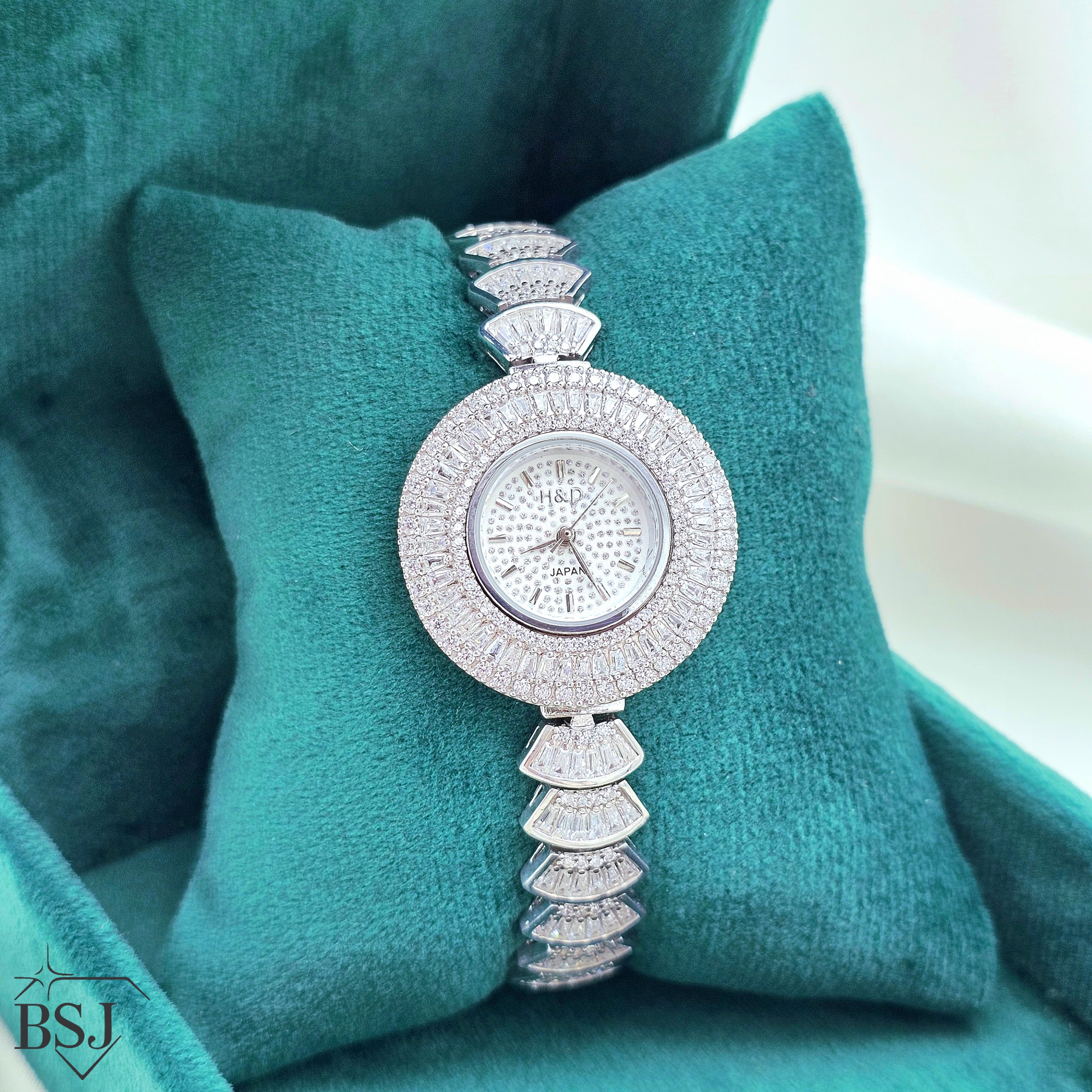 ساعت نقره جواهری زنانه BSJ_W508 از ساعت های شیک و جذاب ساخته شده از نقره با عیار 925 می باشد.سنگ های به کار رفته در آن برلیان از جنس اتمی زیرکونیا می باشند که به صورت میکروستینگ مخراج کاری شده اند و در برابر ضربه مقاوم اند.به صورت کلی، ساعت های نقره در تمام مراکز فروش نقره در سراسر کشور به صورت وزن بدنه و موتور، یکجا خرید و فروش می شوند، جنس بدنه از نقره به عیار 925 بوده. تنها قسمتی از محصول که نقره نیست موتور آن می باشد.آبکاری دو مرحله ای رودیوم(طلا سفید)، سبب کیفیت بی نظیر دوام رنگ آن شده است و به دلیل عدم استفاده از نیکل در ساختار آن،بدون حساسیت بوده و با پوست حساس سازگار است.وزن تقریبی ساعت +- 34.92 گرم می باشد.