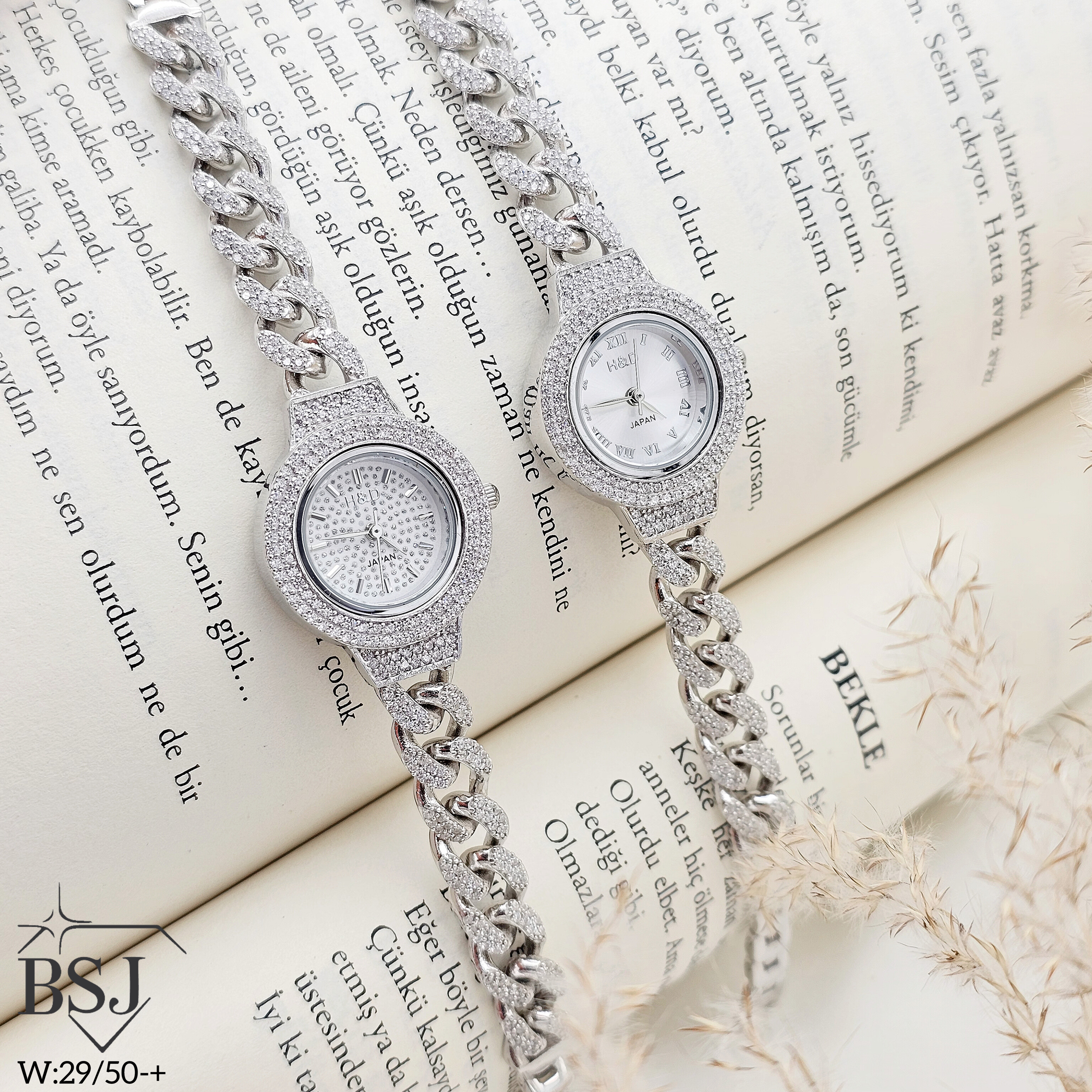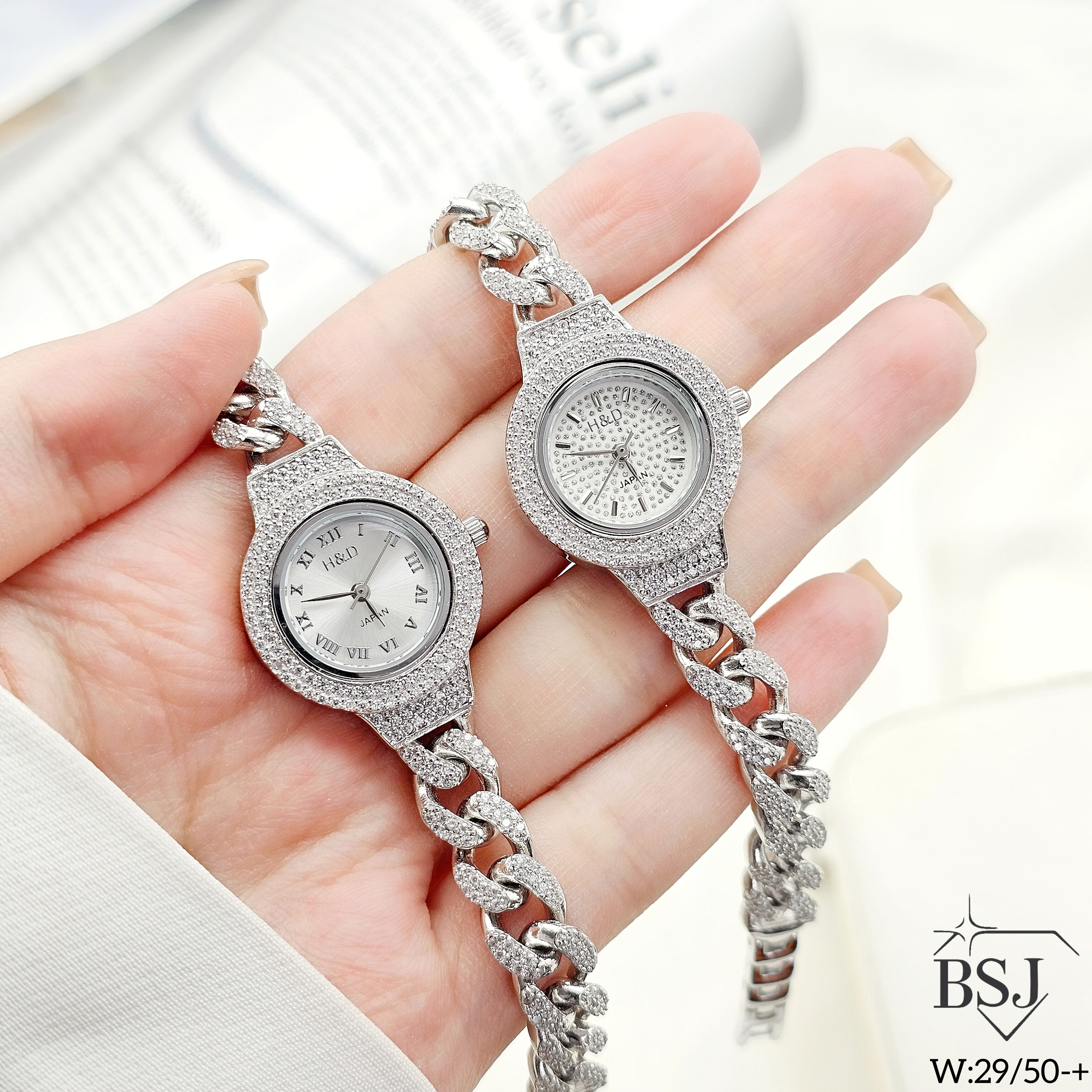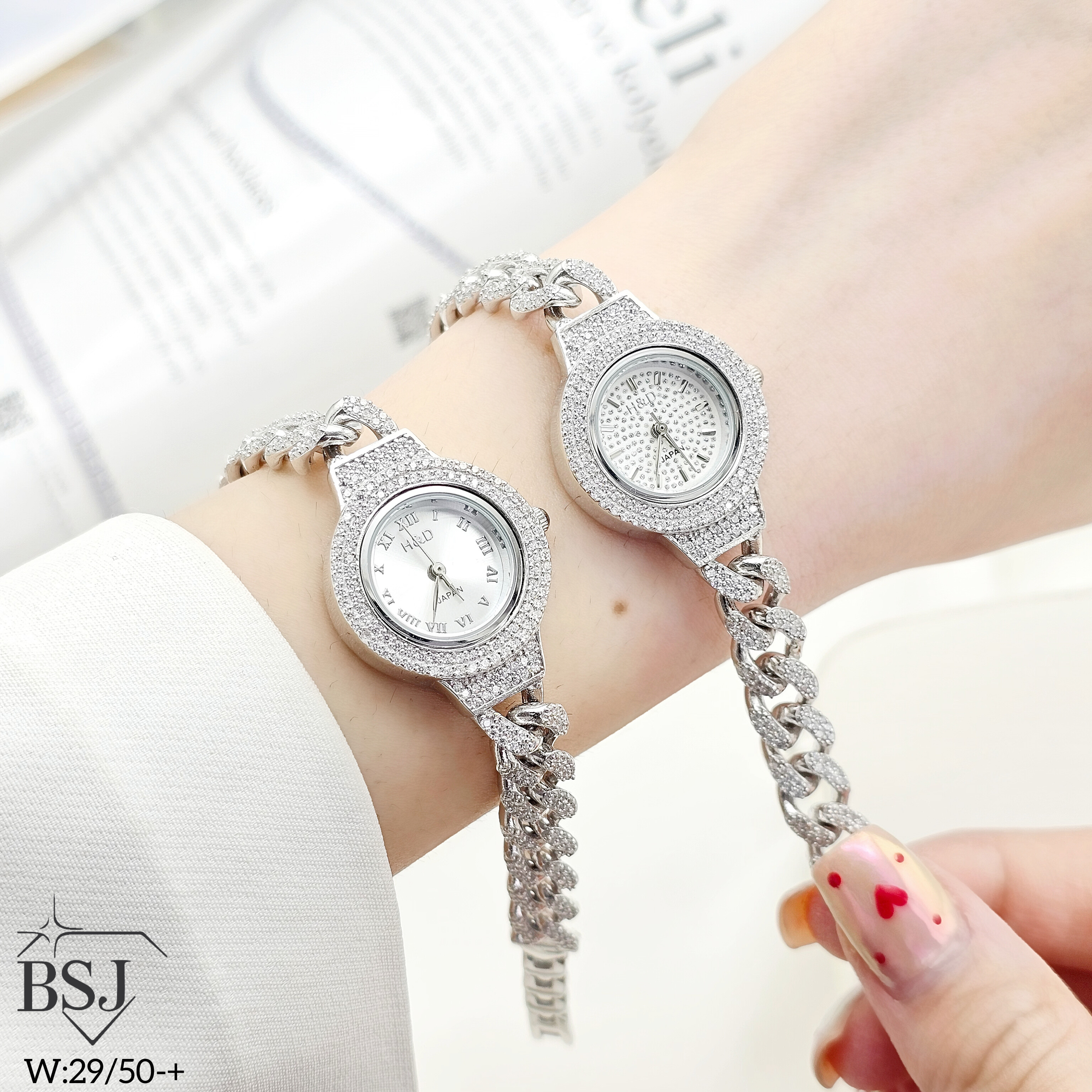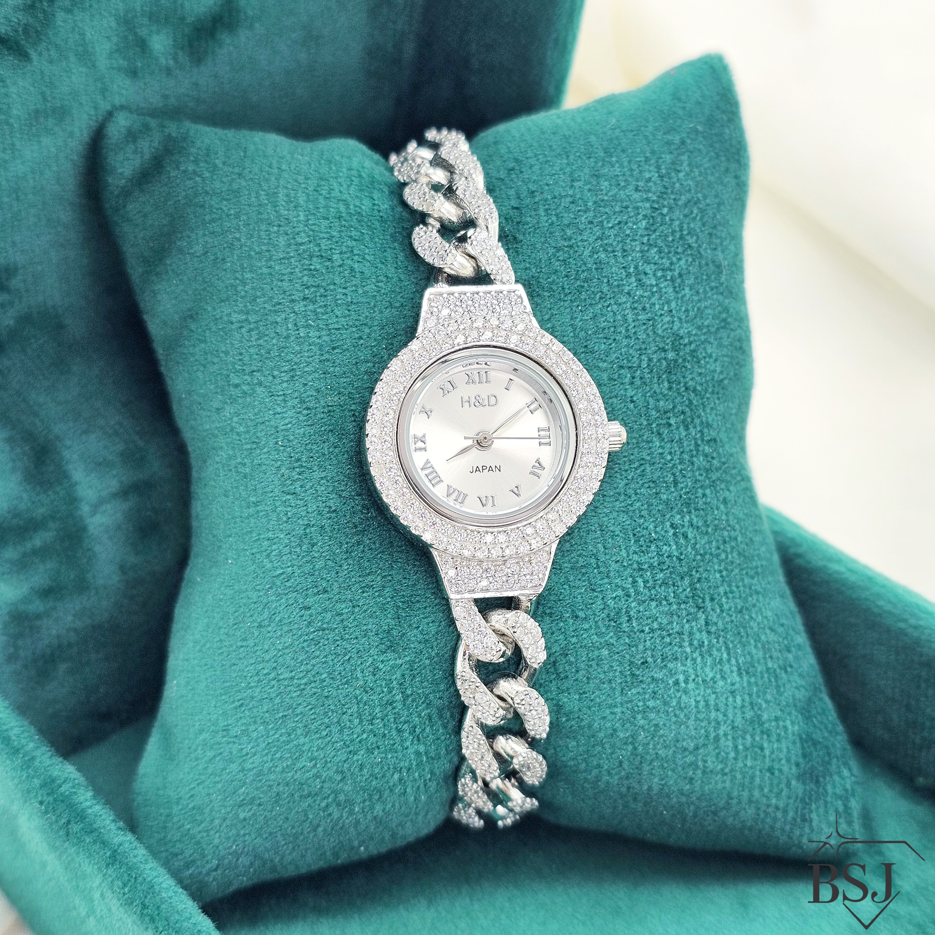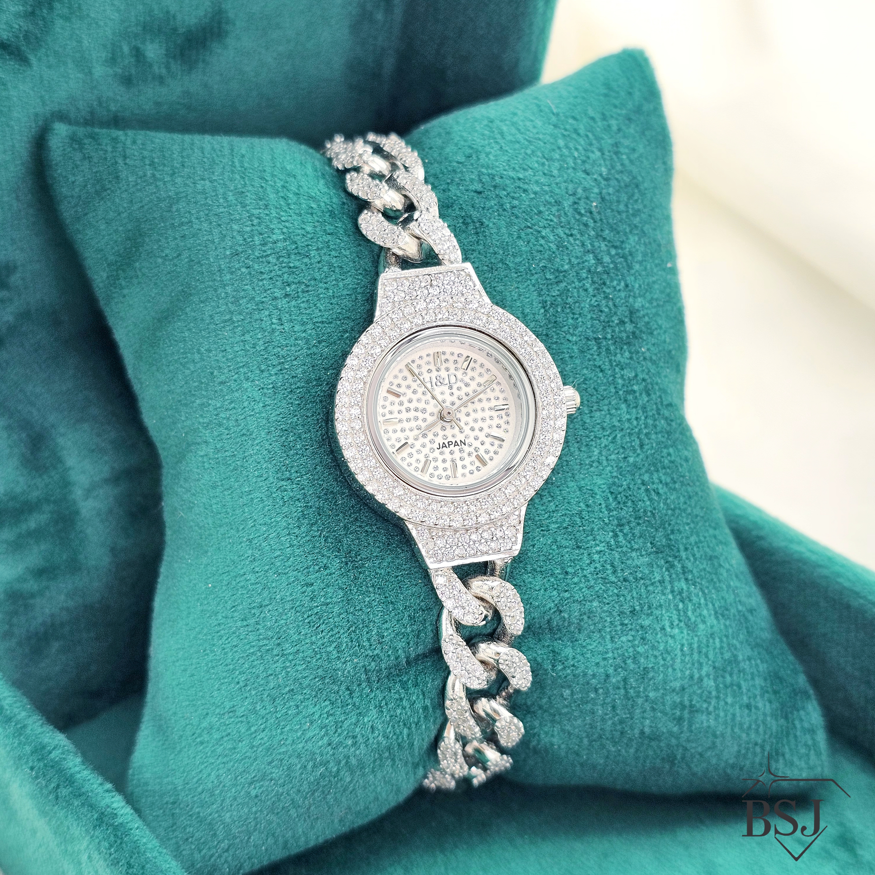 ساعت نقره جواهری زنانه BSJ_W523 از ساعت های شیک و جذاب ساخته شده از نقره با عیار 925 می باشد.سنگ های به کار رفته در آن برلیان از جنس اتمی زیرکونیا می باشند که به صورت میکروستینگ مخراج کاری شده اند و در برابر ضربه مقاوم اند.جنس بدنه از نقره به عیار 925 بوده و تنها قسمتی از محصول که نقره نیست موتور آن می باشد.آبکاری دو مرحله ای رودیوم(طلا سفید)، سبب کیفیت بی نظیر دوام رنگ آن شده است و به دلیل عدم استفاده از نیکل در ساختار آن،بدون حساسیت بوده و با پوست حساس سازگار است.وزن تقریبی ساعت +- 29.50 گرم می باشد.