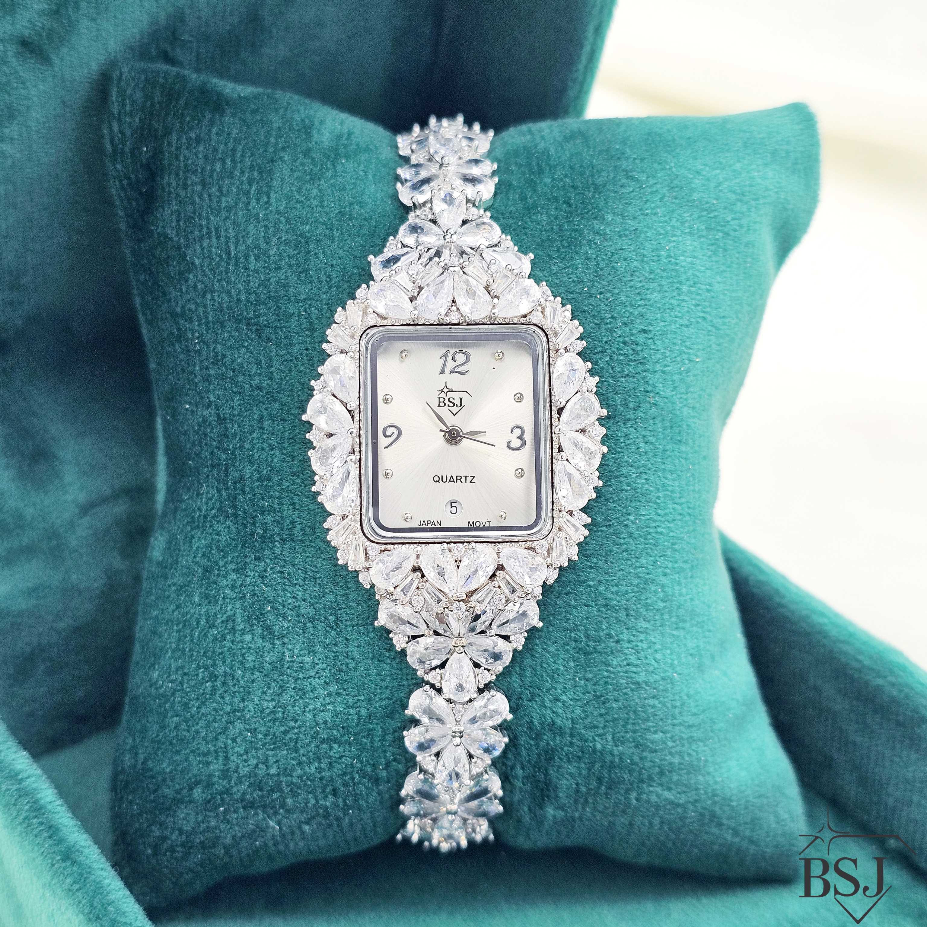 ساعت نقره جواهری زنانه BSJ_W524 از ساعت های شیک و جذاب ساخته شده از نقره با عیار 925 می باشد.سنگ های به کار رفته در آن امرالد و برلیان از جنس اتمی زیرکونیا می باشند که به صورت میکروستینگ مخراج کاری شده اند و در برابر ضربه مقاوم اند.جنس بدنه از نقره به عیار 925 بوده و تنها قسمتی از محصول که نقره نیست موتور آن می باشد.آبکاری دو مرحله ای رودیوم(طلا سفید)، سبب کیفیت بی نظیر دوام رنگ آن شده است و به دلیل عدم استفاده از نیکل در ساختار آن،بدون حساسیت بوده و با پوست حساس سازگار است.وزن تقریبی ساعت +- 34.50 گرم می باشد.