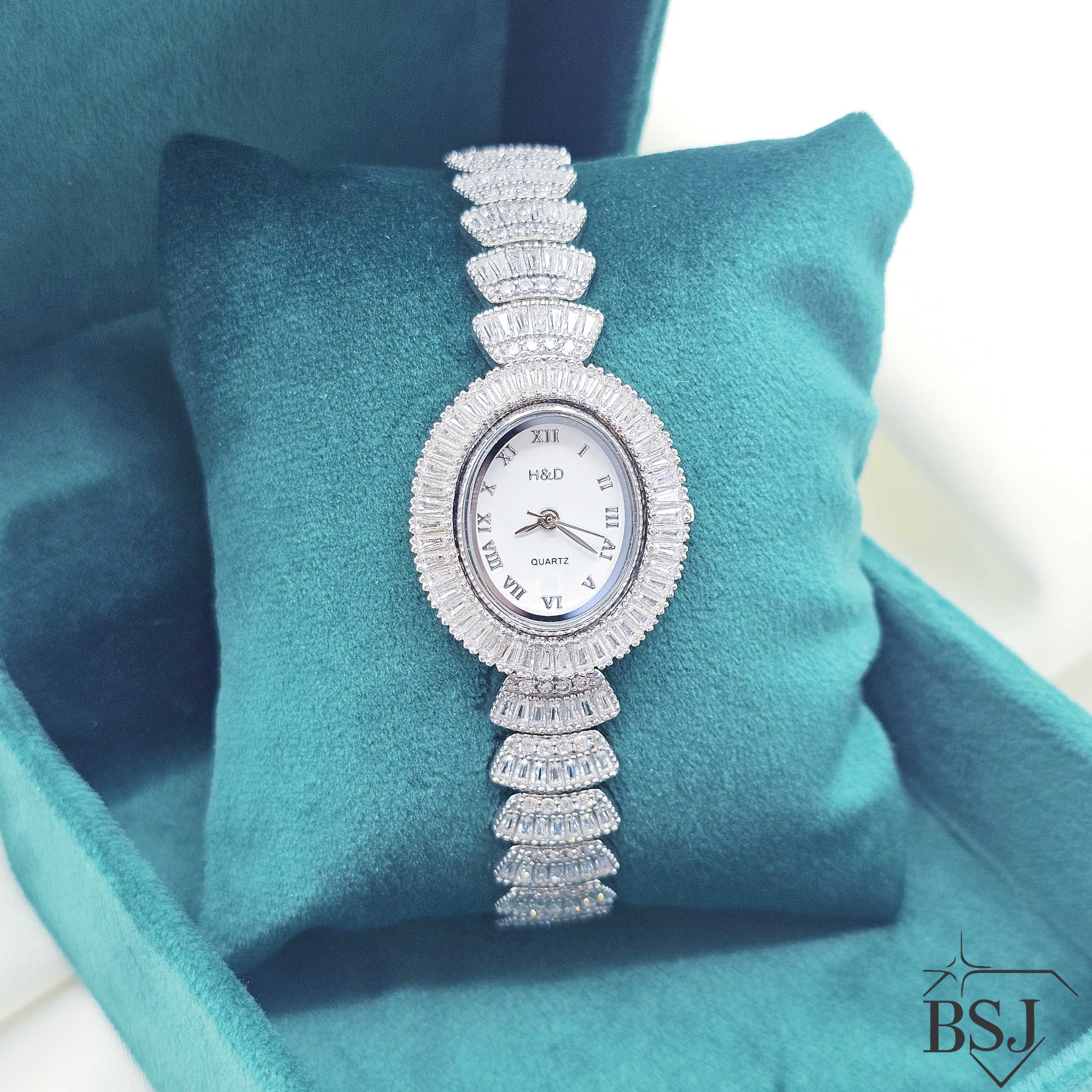ساعت نقره جواهری زنانه BSJ_W531 از ساعت های شیک و جذاب ساخته شده از نقره با عیار 925 می باشد.سنگ های به کار رفته در آن امرالد و برلیان از جنس اتمی زیرکونیا می باشند که به صورت میکروستینگ مخراج کاری شده اند و در برابر ضربه مقاوم اند.جنس بدنه از نقره به عیار 925 بوده و تنها قسمتی از محصول که نقره نیست موتور آن می باشد.آبکاری دو مرحله ای رودیوم(طلا سفید)، سبب کیفیت بی نظیر دوام رنگ آن شده است و به دلیل عدم استفاده از نیکل در ساختار آن،بدون حساسیت بوده و با پوست حساس سازگار است.وزن تقریبی ساعت +- 32.40 گرم می باشد.